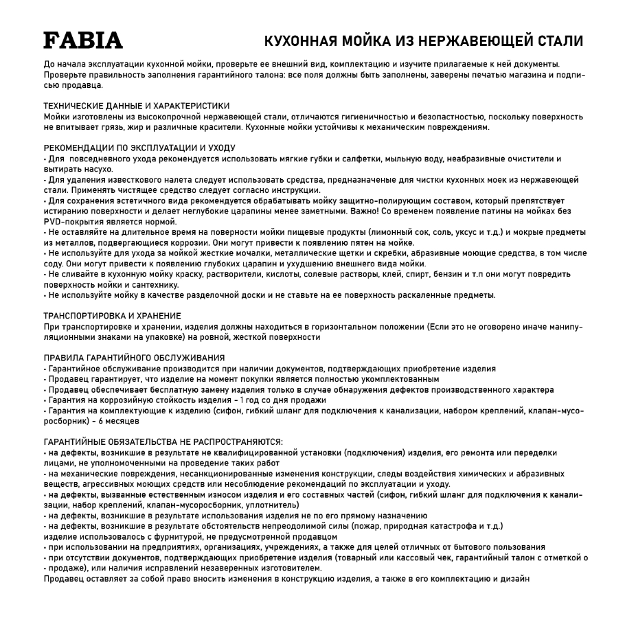 Кухонная мойка Fabia 62272 .