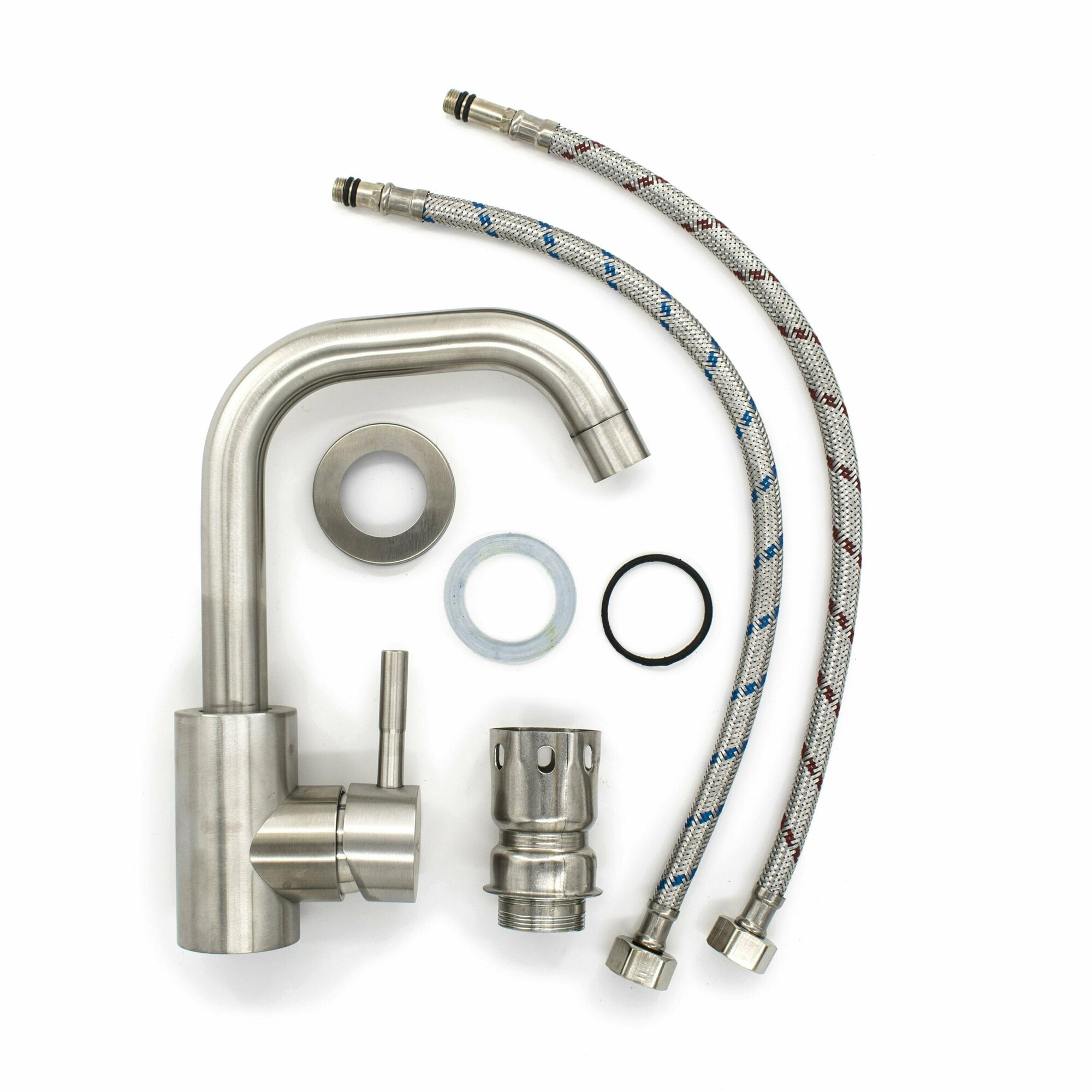 Смеситель нержавеющая сталь однорычажный, для кухни, крепление гайка, картридж 40мм, (шт.) РемоКолор