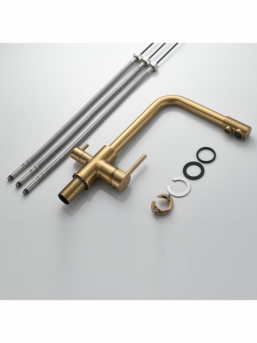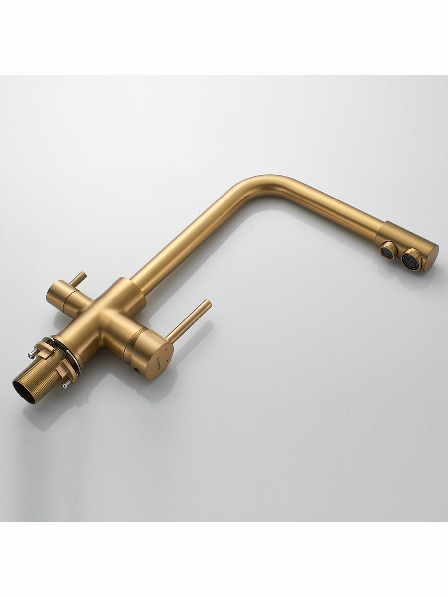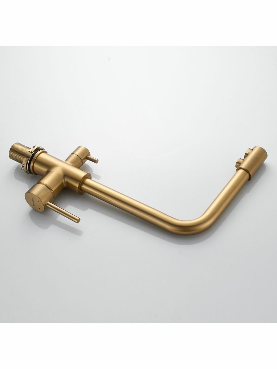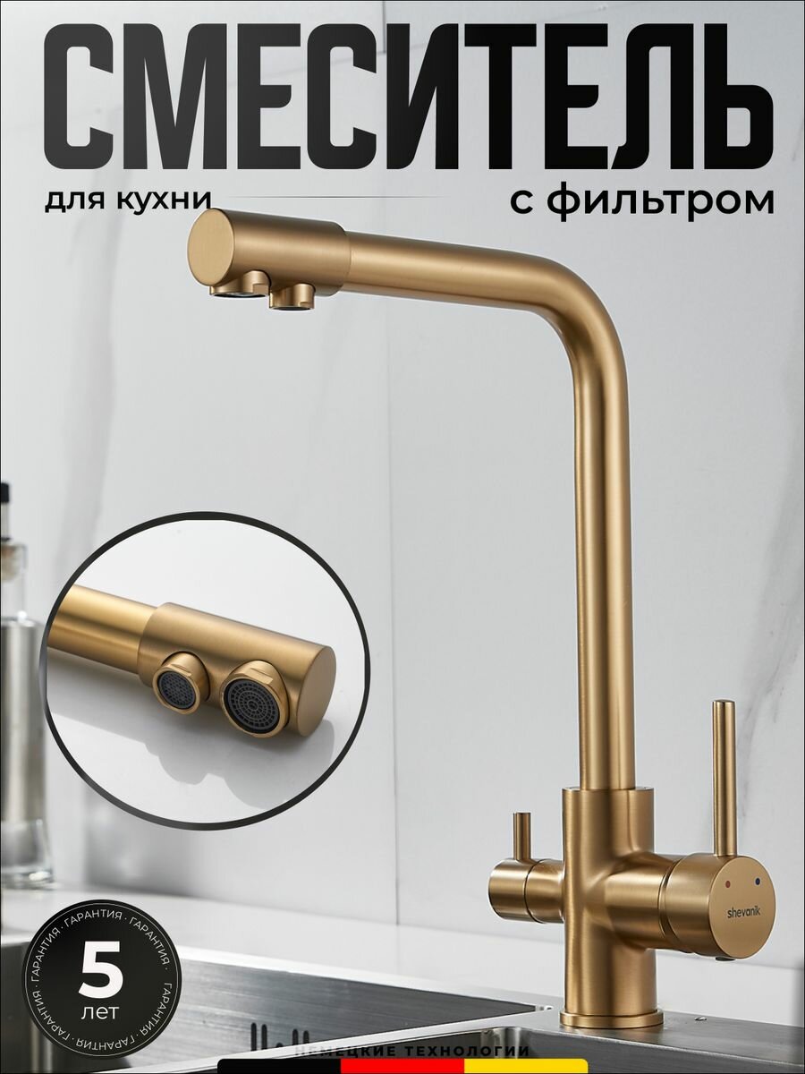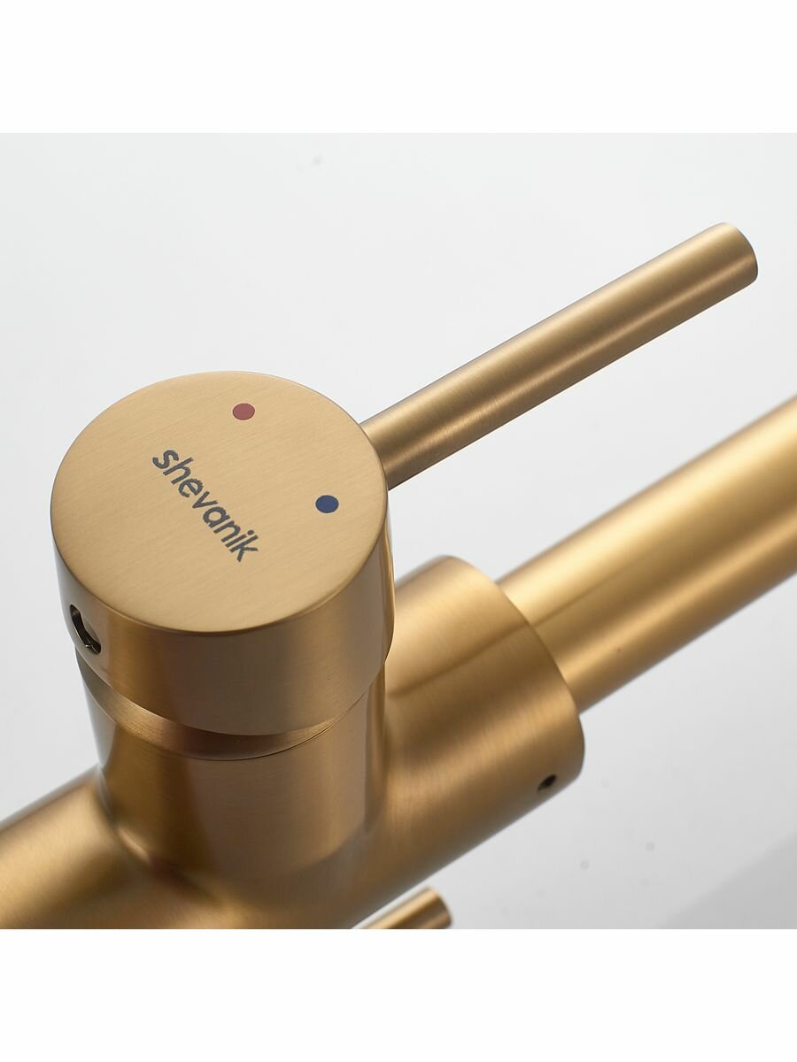 Смеситель для кухни с подключением фильтра питьевой воды Shevanik S328G золотой сатин