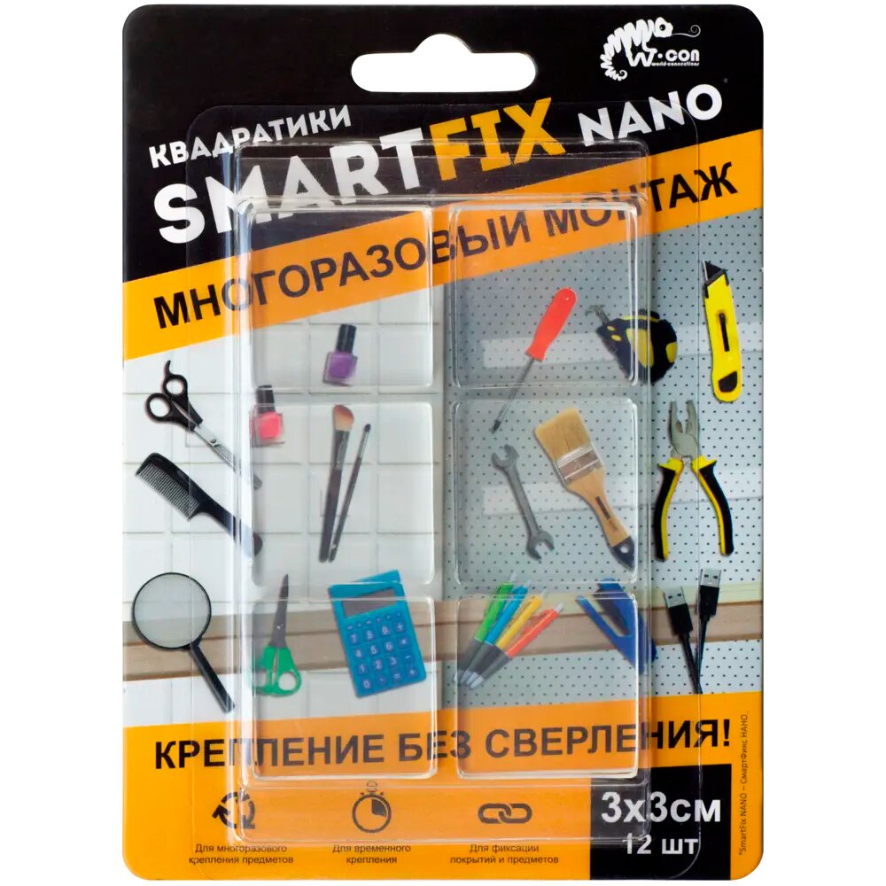 Купить Квадраты для многоразового монтажа W-con SmartFix NANO, 3 х 3 см, 12 штук