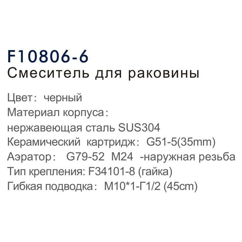 СохранитьFRAP F10806-6, Смеситель для раковины, нержавеющая сталь, черный, крепление гайка интересное: