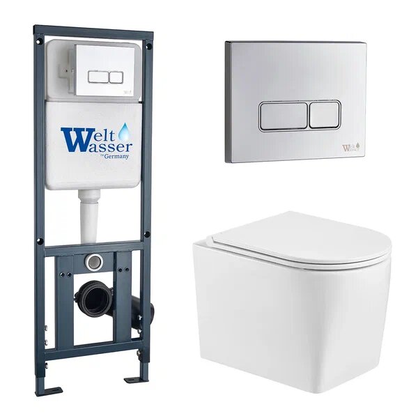 Комплект WeltWasser 10000008941 унитаз Nesenbach 004 GL-WT + инсталляция Marberg 410 + кнопка смыва интересное: