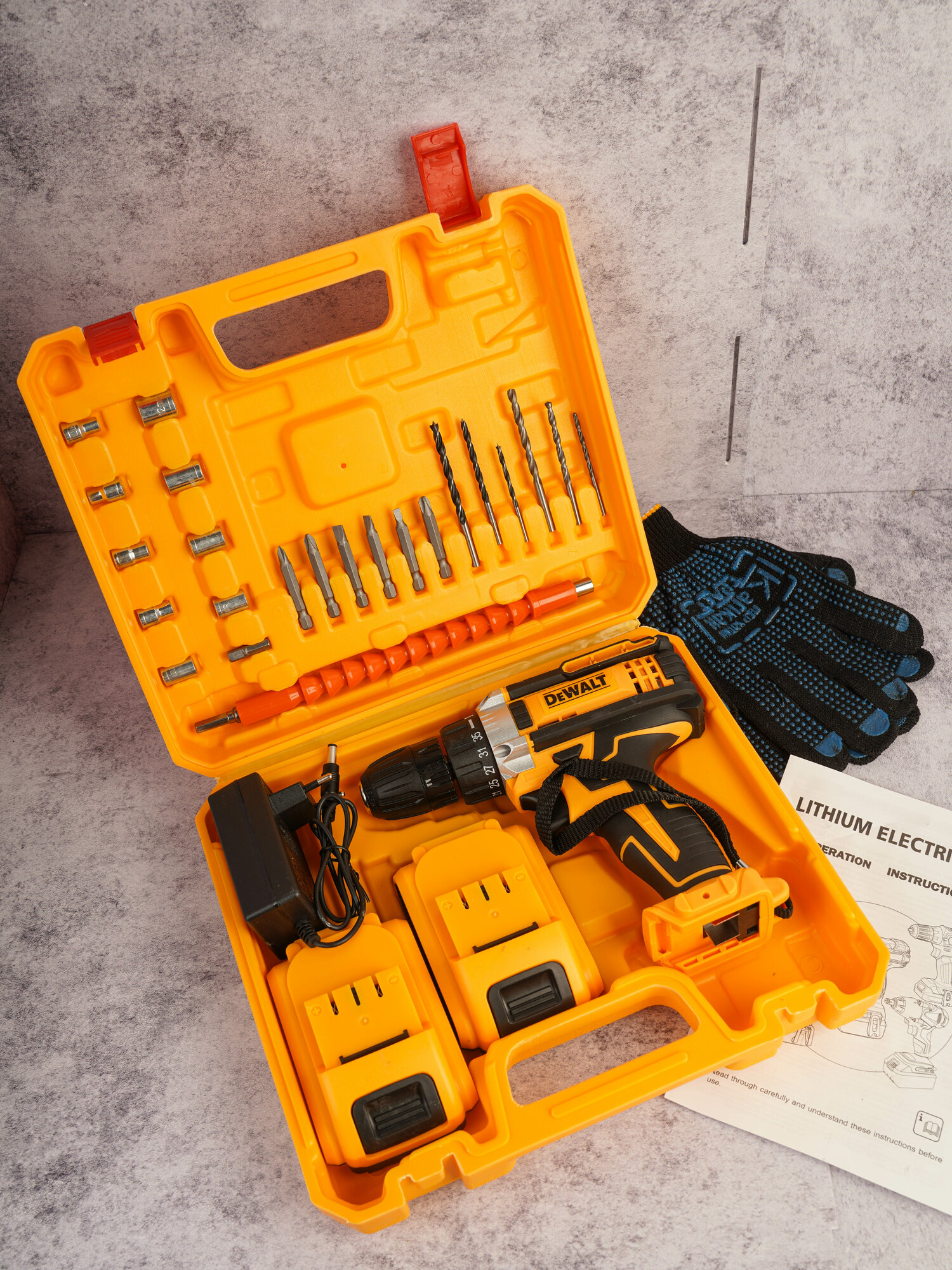 Аккумуляторный шуруповерт 28В с двумя аккумуляторами и кейсом интересное: