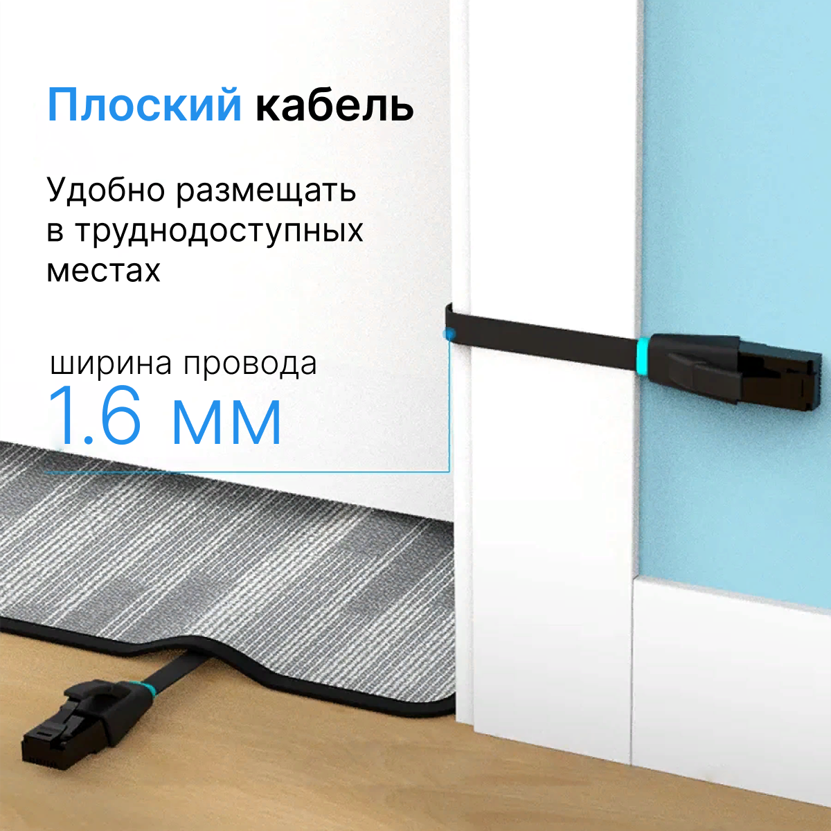 Vention Патч-корд прямой Ethernet UTP cat.6, RJ45, плоский сетевой кабель для ноутбука, роутера, кабель локальной сети, длина 1,5м, цвет черный