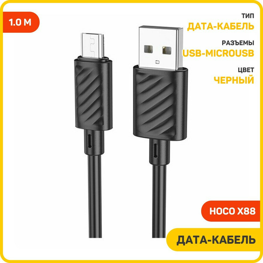 Кабель USB - microUSB (Am-Bm) Hoco X88 Gratified, 1 м, цвет: черный