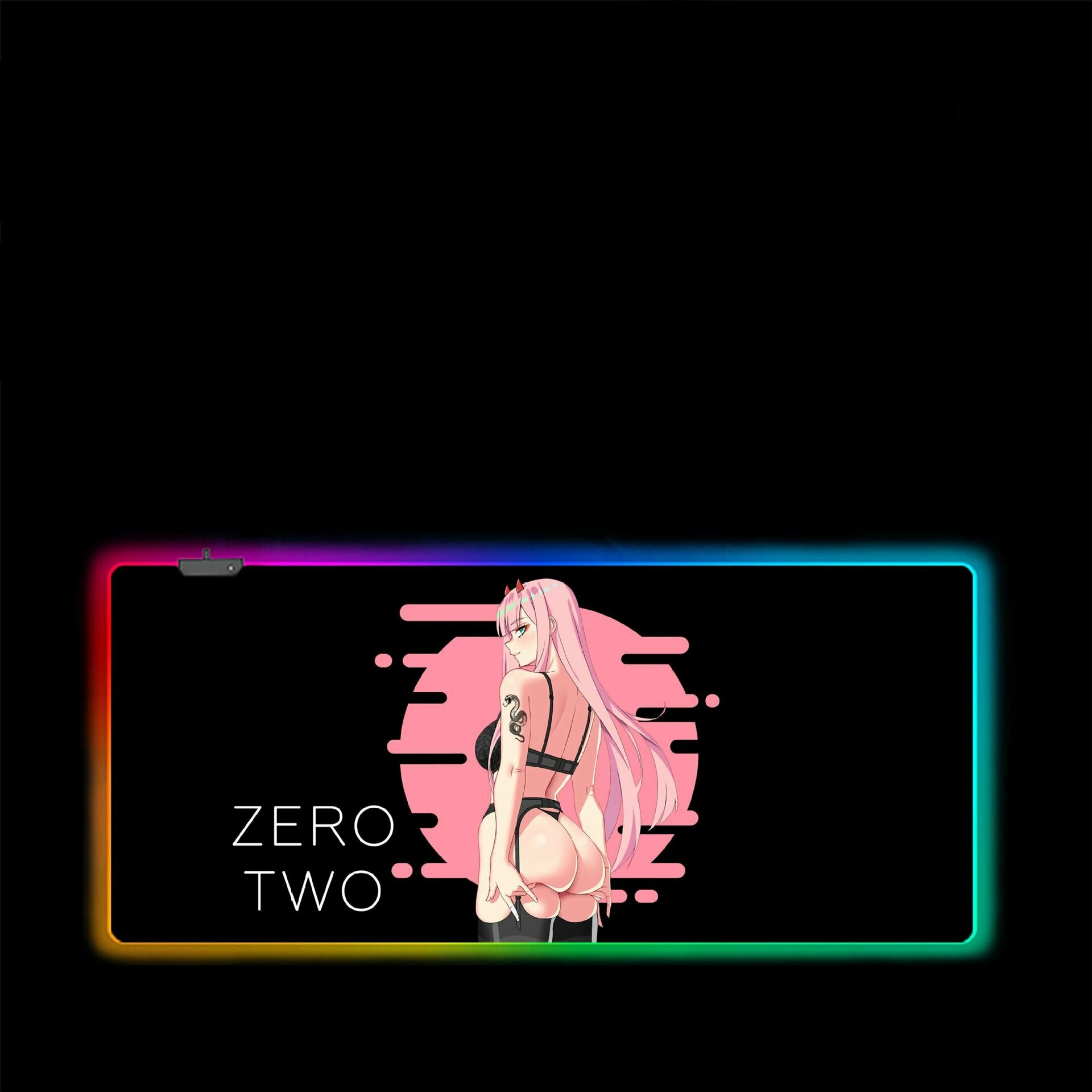 Игровой коврик для мыши с RGB подсветкой, водоотталкивающее покрытие, 800 х 300 х 4 мм, много режимов, коврик для клавиатуры и мыши, Zero Two розовый