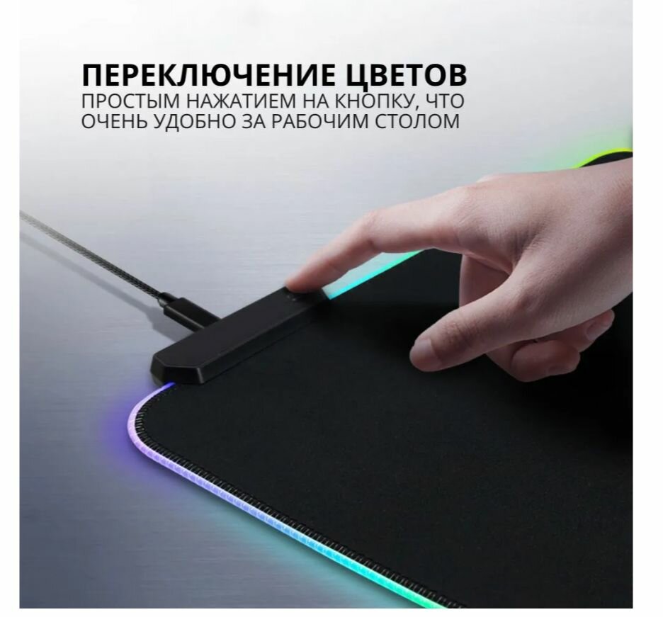 Игровой коврик для мыши с RGB подсветкой, водоотталкивающее покрытие, 800 х 300 х 4 мм, много режимов, белый