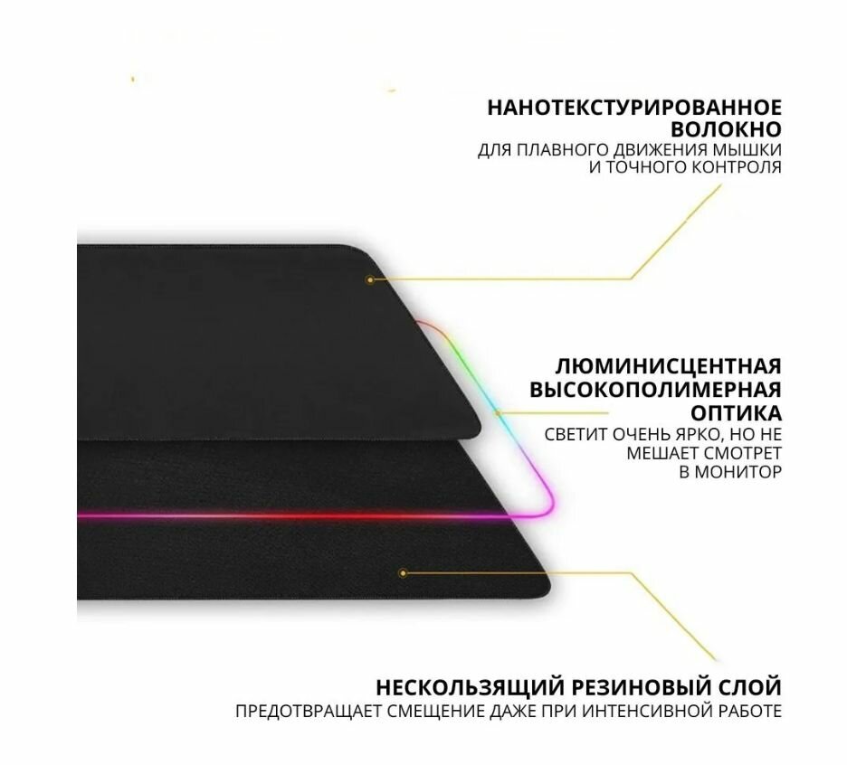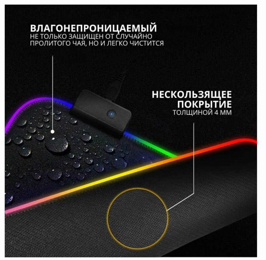 Игровой коврик для мыши с RGB подсветкой, водоотталкивающее покрытие, 900 х 400 х 4 мм, много режимов, коврик для клавиатуры и мыши