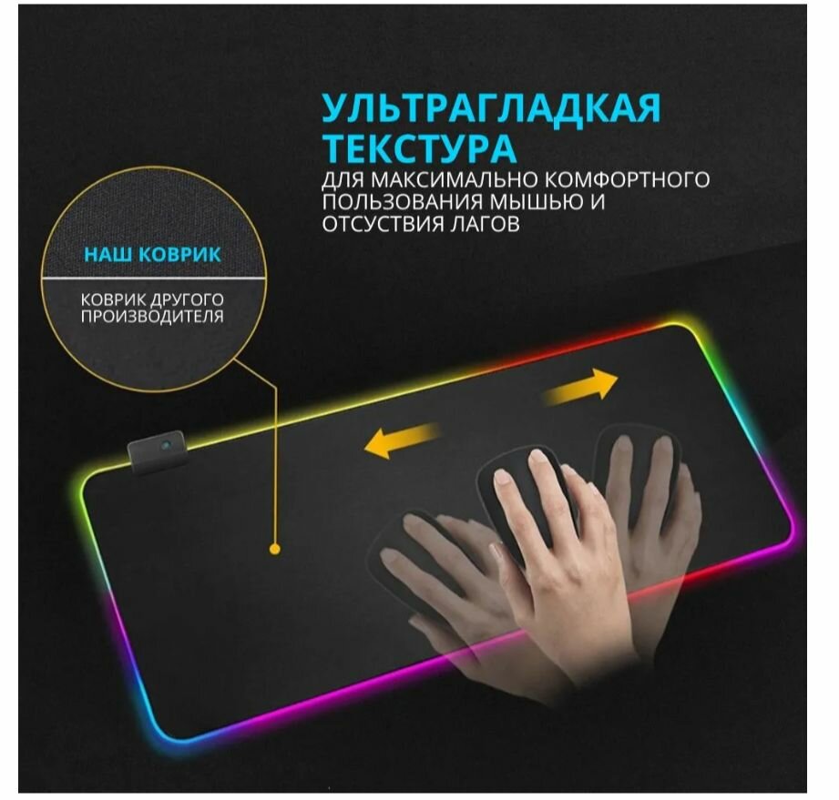 Игровой коврик для мыши с RGB подсветкой, водоотталкивающее покрытие, 800 х 300 х 4мм, много режимов, коврик для клавиатуры и мыши