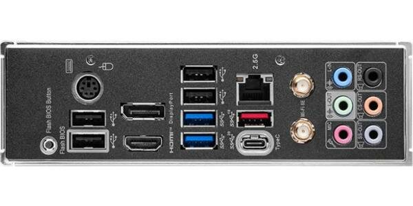| Разъемы на задней панели | 2 x SMA (для антенны Wi-Fi), 2 x USB 3.2 Gen1 Type-A, 4 x USB 2.0 Type-A, DisplayPort, HDMI, LAN RJ-45, PS/2 (клавиатура/мышь), USB 3.2 Gen2 Type-A, USB 3.2 Gen2x2 Type-C |