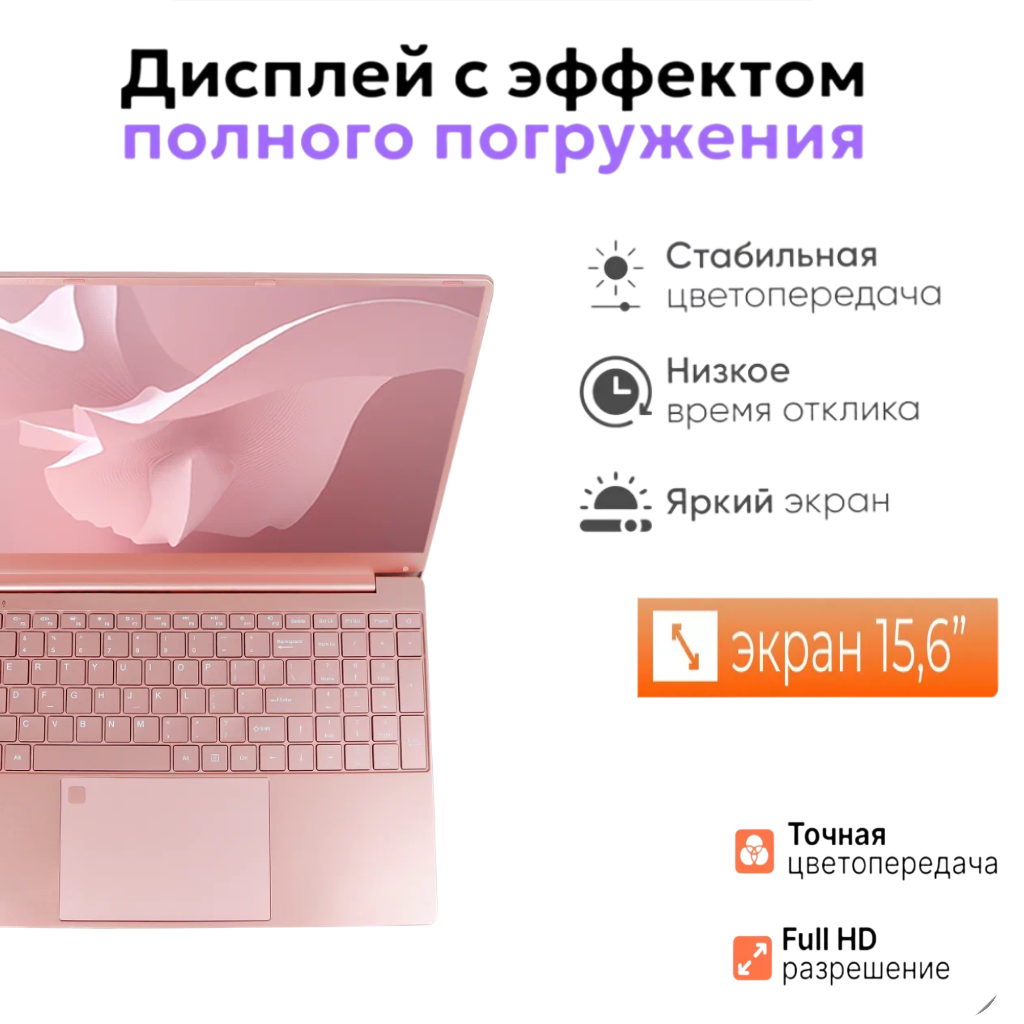 Ноутбук 15.6", Intel Celeron N5095 (2.0 ГГц), RAM 16 ГБ, SSD 512 ГБ, Intel UHD Graphics, Windows Pro, Розовый, Русская раскладка