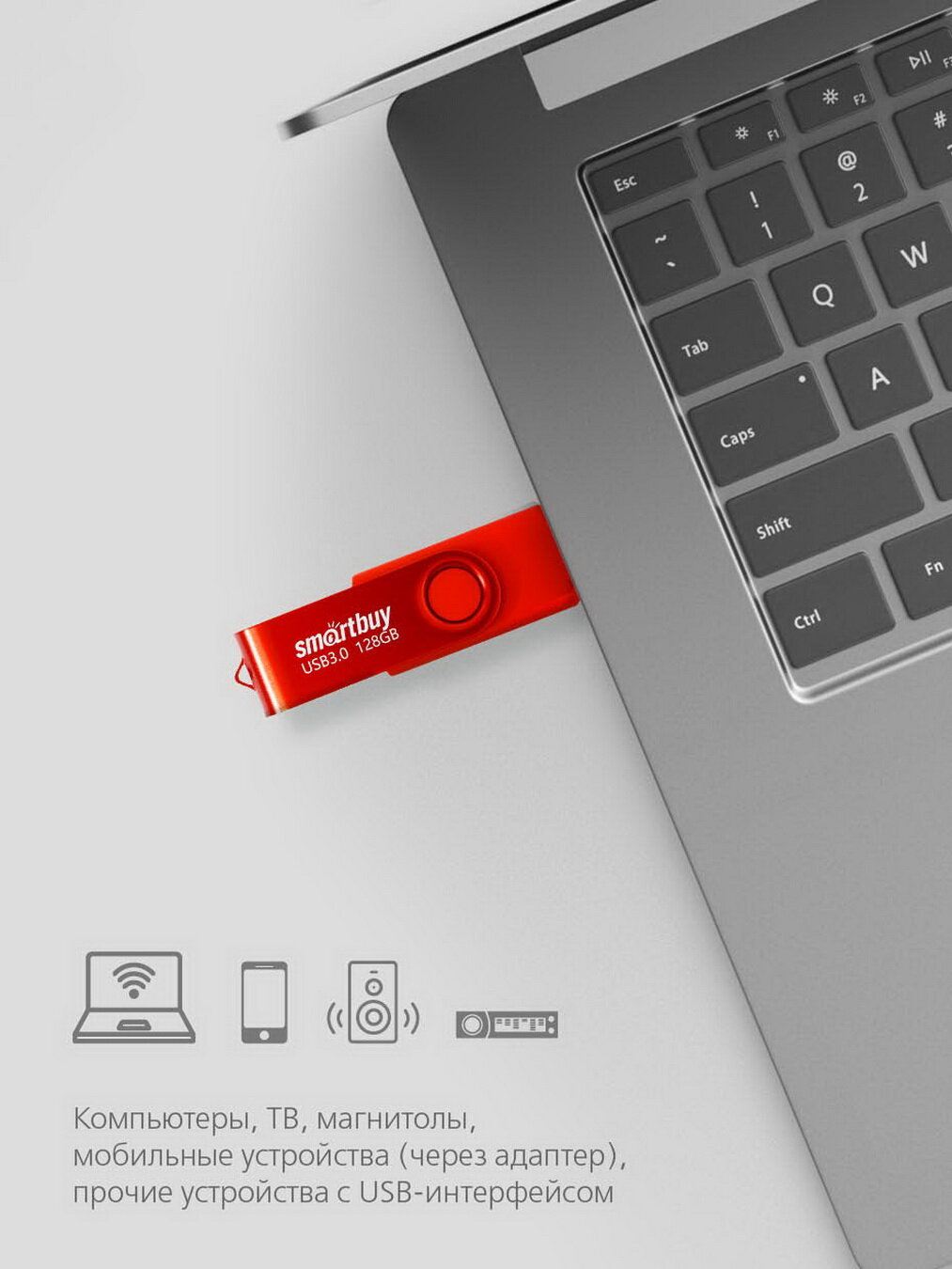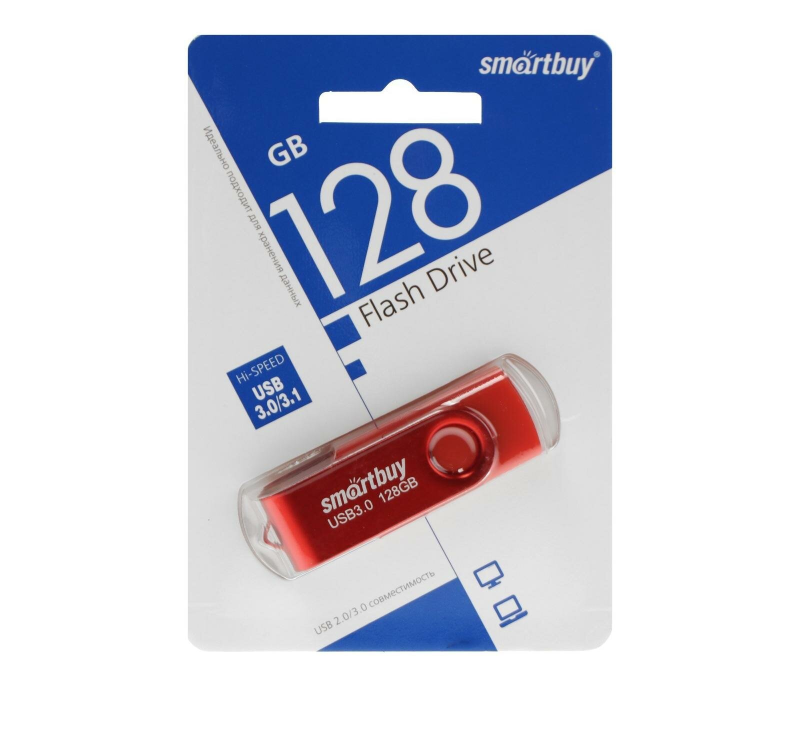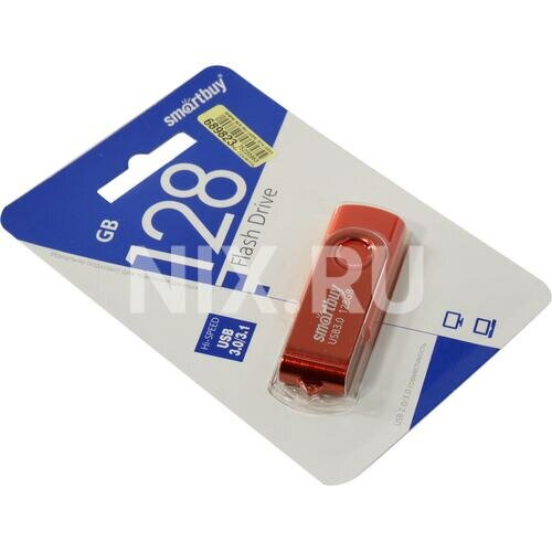 Флешка Smartbuy Twist, 128 Гб, USB 3.1, чт до 70 Мб/с, зап до 40 Мб/с, красная интересное: