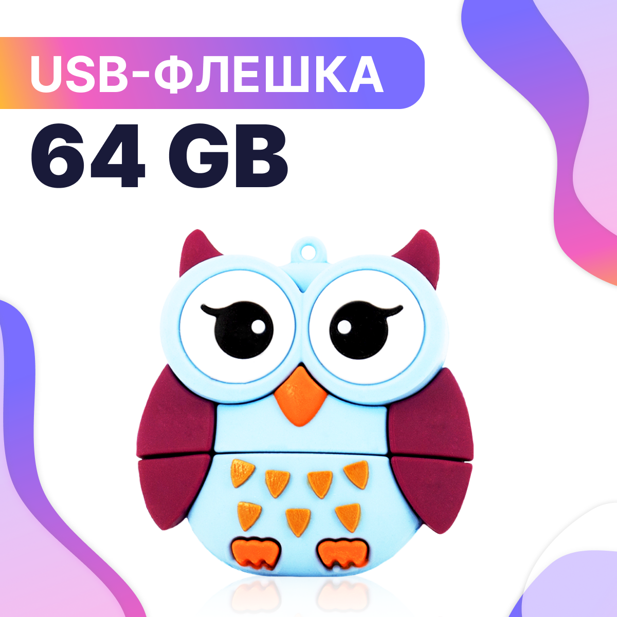 Купить Флешка USB 64GB / Оригинальная подарочная флешка ЮСБ 64 ГБ / Флеш накопитель / USB Flash Drive (Сова голубая)