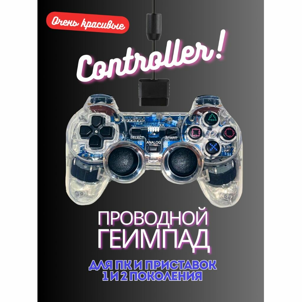 Проводной геймпад (джойстик) для игровой приставки и ПК Синий Кристалл