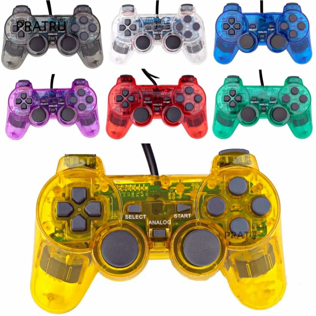 Проводной геймпад, джойстик, для игровой приставки Sony Playstation 2 и ПК, Салатовый Кристалл