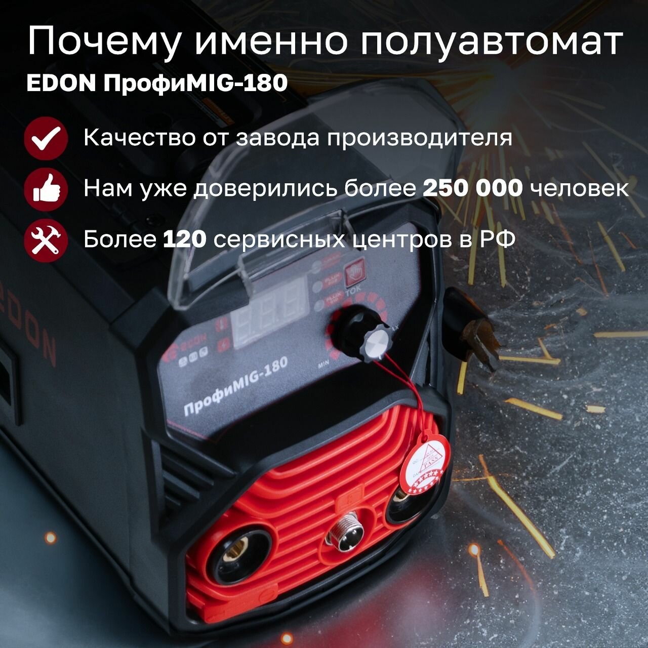 Сварочное оборудование Edon Сварочный аппарат полуавтоматический Edon ПрофиMIG-180 MIG 6,7кВт 20-180А, MMA 7,9кВт 20-180