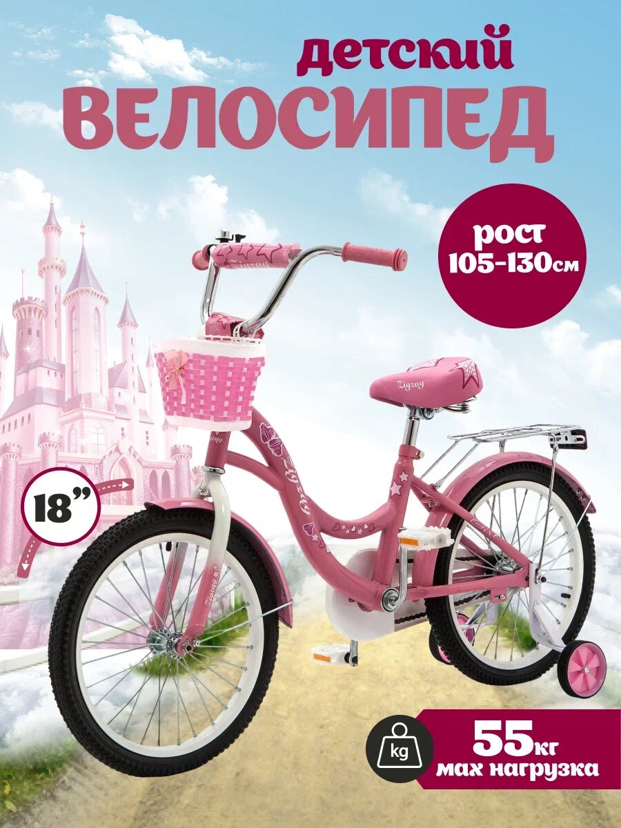 СохранитьВелосипед детский двухколесный 18" ZIGZAG GIRL розовый от 5 до 7 лет на рост 105-130см (требует финальной сборки) интересное: