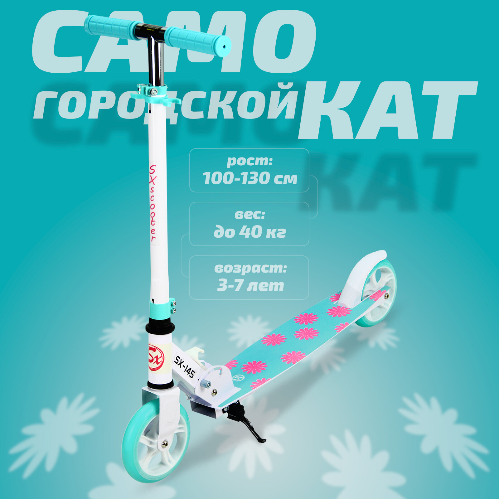 Купить Самокат двухколесный детский SX Scooter, 145мм, сталь, складной, бирюзовый
