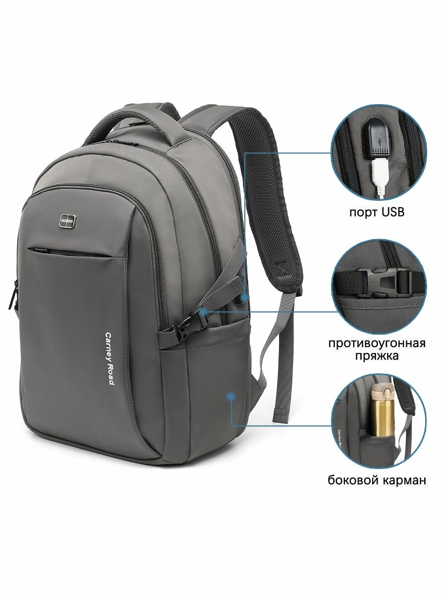 Рюкзак мужской USB спортивный Carney Road с USB-выходом, антивор и боковыми карманами