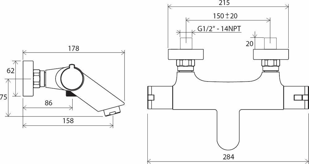 Смеситель для ванны термостатический RAVAK Termo TE 022.00/150 настенный