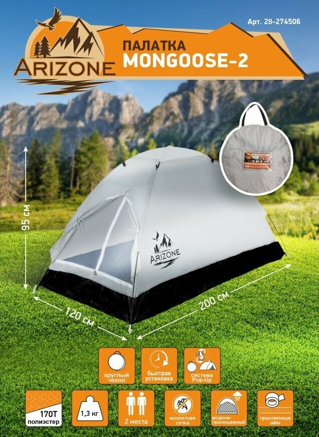 Палатка Mongoose-2, ARIZONE (размер: 200х120х95 см) (28-274506) интересное: