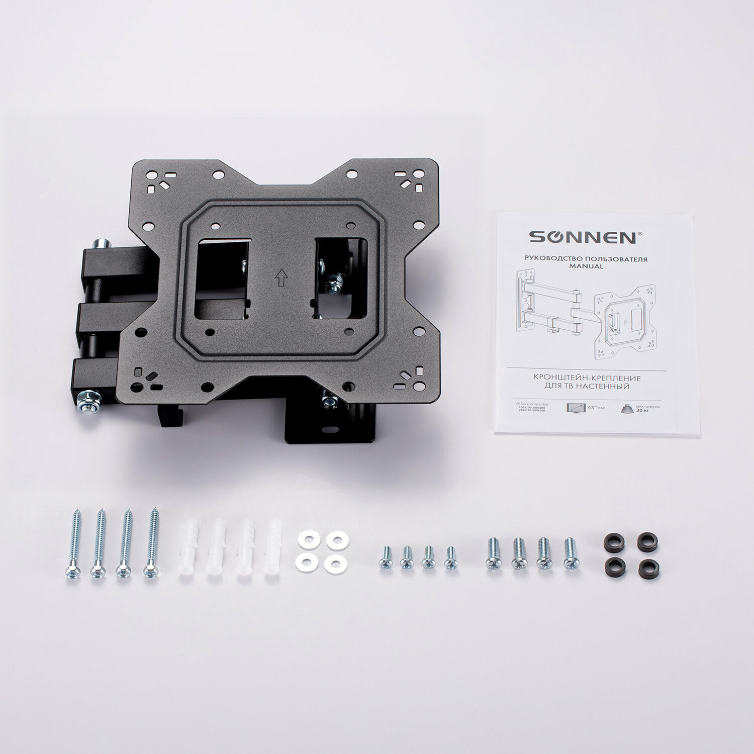 Кронштейн-крепление для ТВ настенный, до 30 кг, VESA 100х100-200х200, 23"-43", черный, SONNEN, 455947