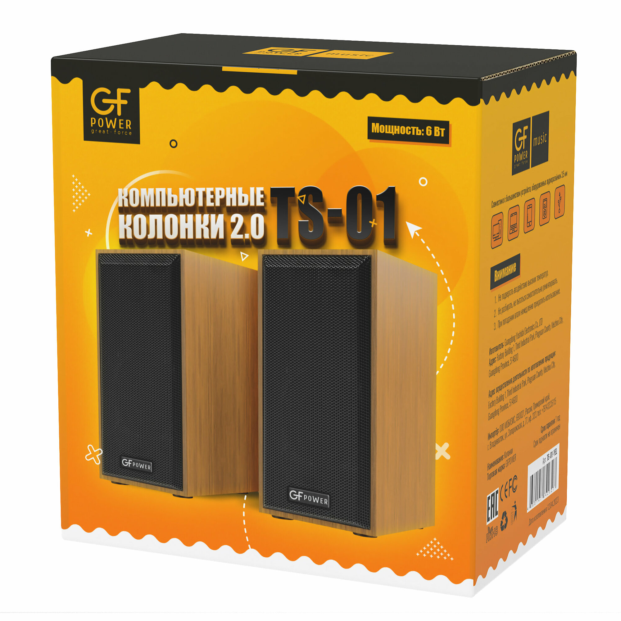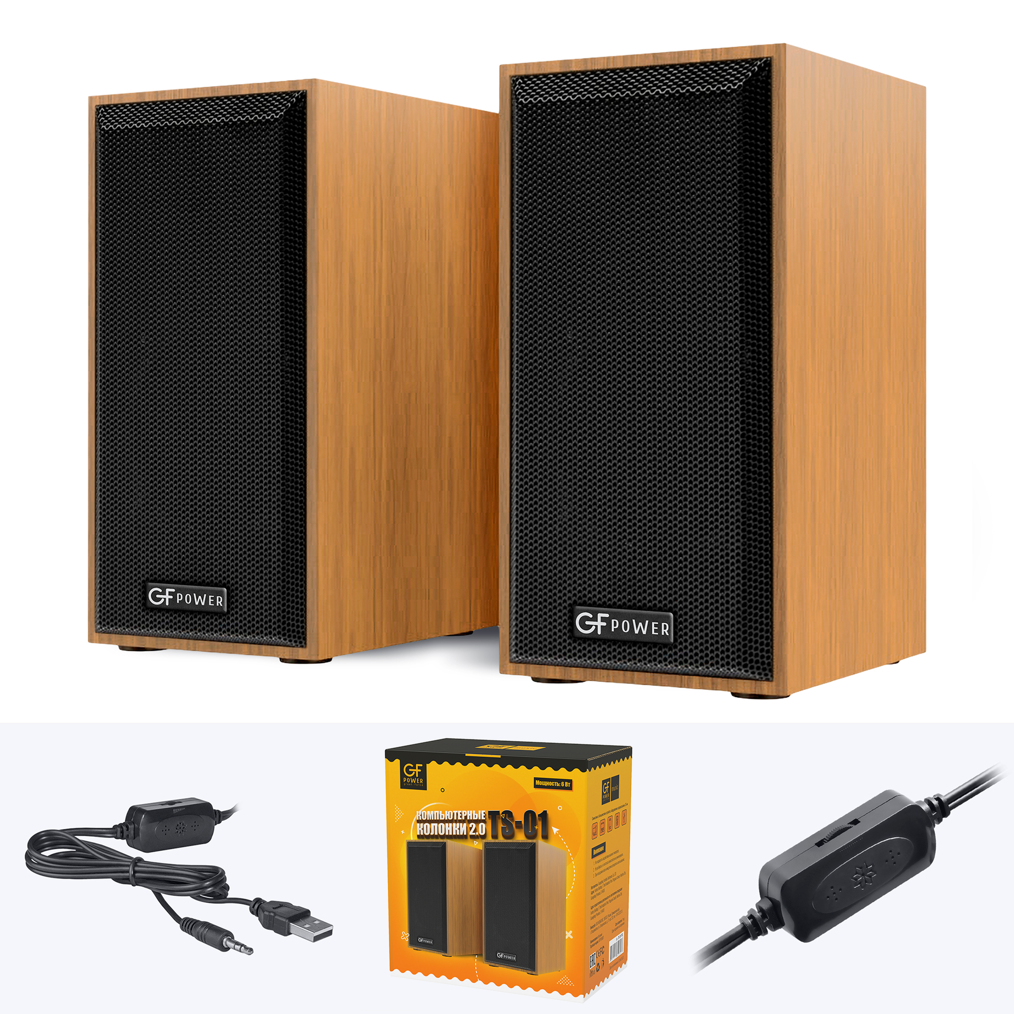 Колонки для компьютера GFPoWeR TS-01, 2.0, 6Вт, питание от USB, под дерево