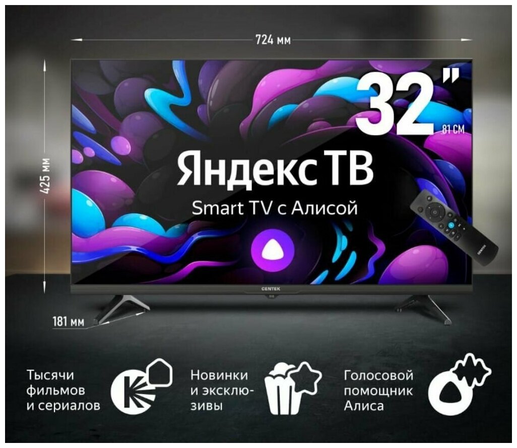 Телевизор CENTEK CT-8724: 24 дюйма, LED SMART, HD, Wi-Fi, Bluetooth, Яндекс YaOS, Алиса