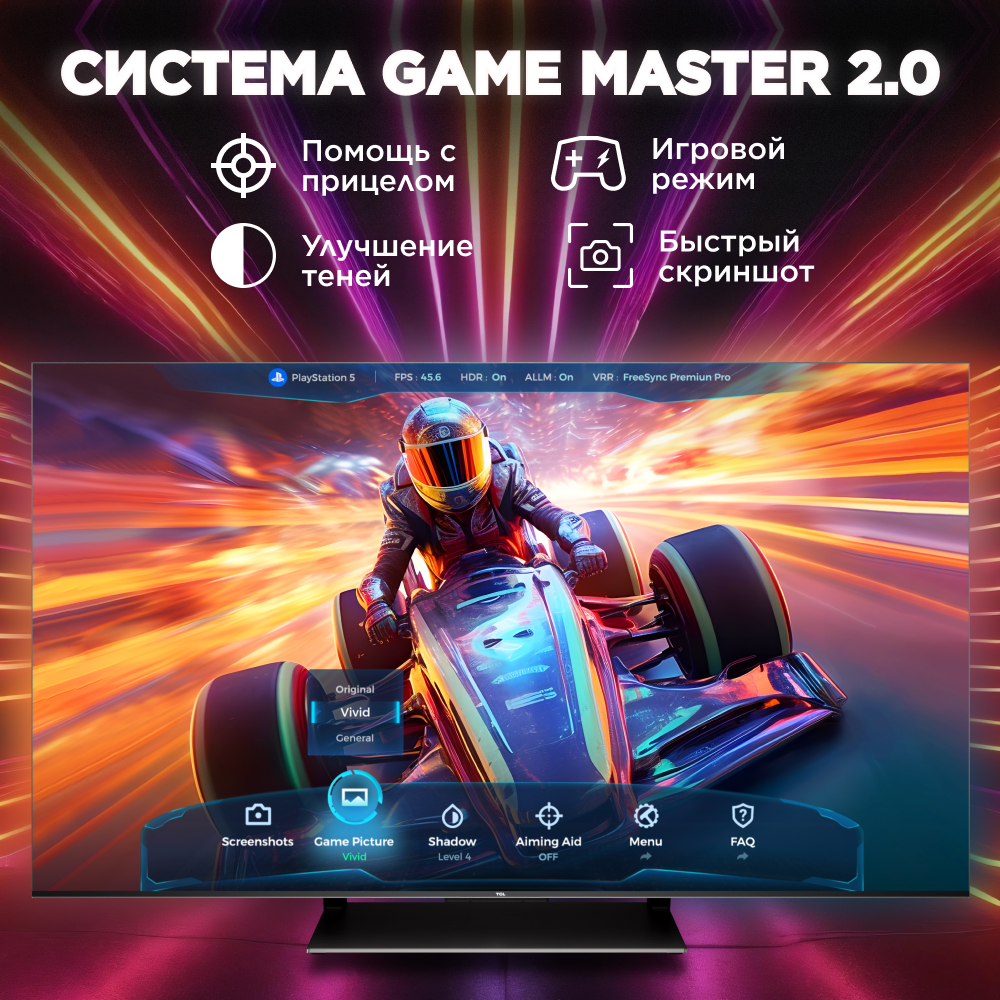 | Дополнительная информация | 144Гц VRR. Голосовое управление. QLED. 1000 нит пиковая яркость. Google TV. Встроенный модуль Bluetooth: Да. Габаритные размеры (В*Ш*Г): 77*122*32 см. Серия: C745. Диагональ экрана: 139.7. Ultra HD: Да. Экран: 55"/3840x2160 Пикс. Частота обновления: 144. Технология HDMI ARC: Да. Операционная система: Google TV. Звук: 2.0. Тип батарей пульта ДУ: 2 х AAA. Смартфон в качестве пульта ДУ: Да. Поддержка Wi-Fi: Да. Поддержка Smart TV: Да. Запись с ТВ на USB устройство: Да. Функция TimeShift: Да. Цифровой тюнер DVB: T/T2/C/C2/S/S2. LAN разъем (RJ45): 1. Разъем для модуля DVB CAM: 1. Разъем для наушников 3.5 мм: 1. Настольная подставка: Да. Вес без подставки: 13.5. Ширина подставки: 35.5. Технология экрана: VA. Воспроизведение с USB: Да. Поддержка Apple HomeKit: Да. Габаритные размеры (без подставки): 71*122*7 см. Google Assistant: Да |
