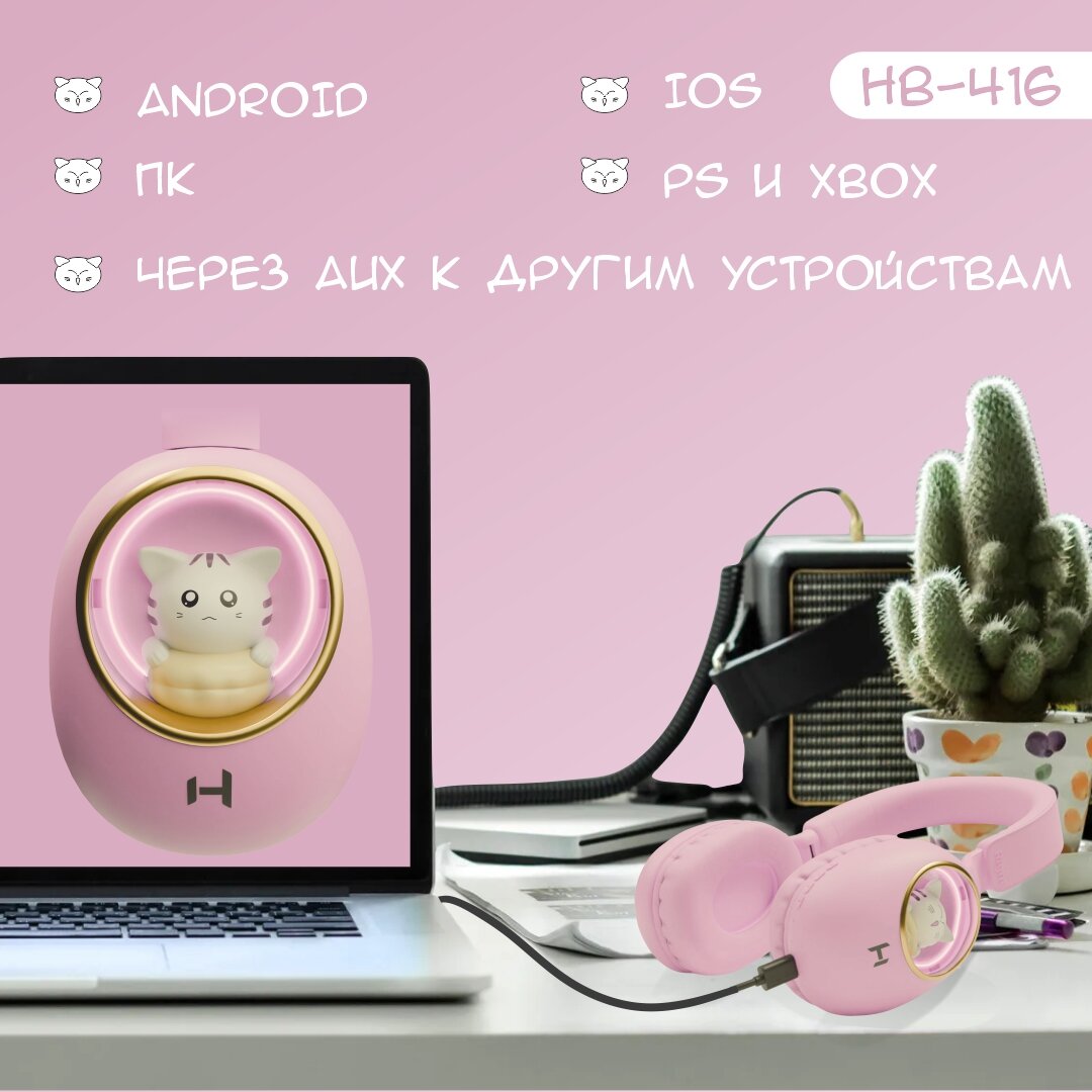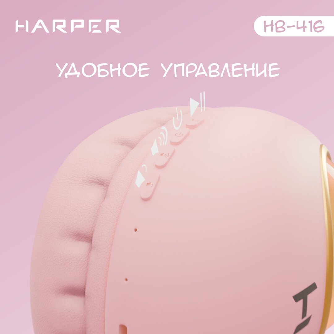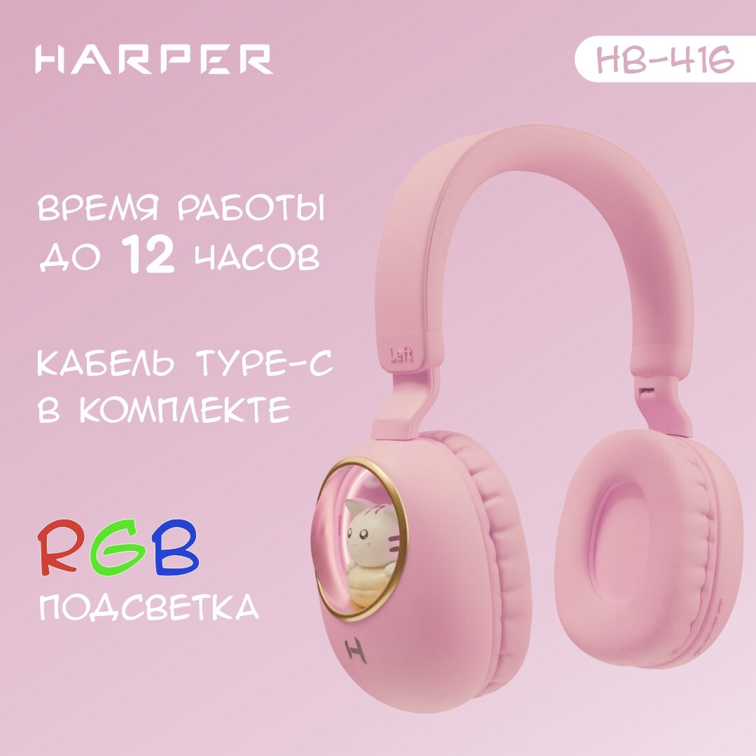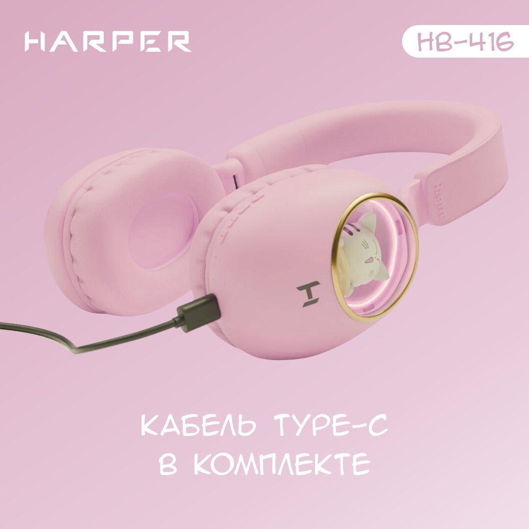 Беспроводные накладные BT наушники HARPER HB-416 (cat in window), розовый