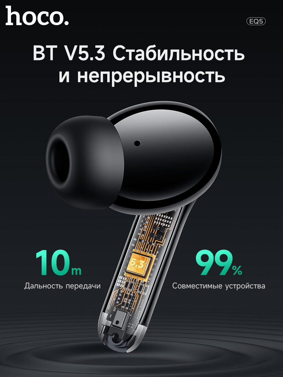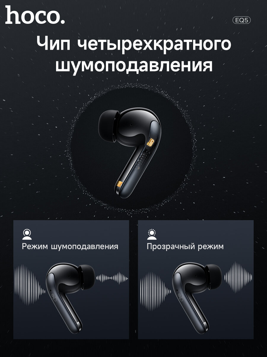 Беспроводные TWS наушники Hoco EQ5 с активным шумоподавлением ANC+ENC, чёрные интересное:
