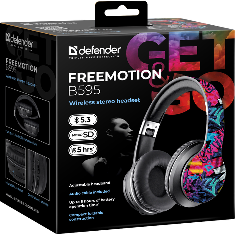 Ниже Вы можете прочитать отзывы на Наушники DEFENDER FREEMOTION B595 BLACK+GRAFFITI (63597), ознакомится с подробными характеристиками, посмотреть интересные обзоры и фотографии на Наушники DEFENDER FREEMOTION B595 BLACK+GRAFFITI (63597).