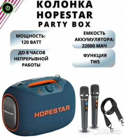 Портативная Bluetooth Колонка Hopestar Party Box Синий (2 микрофона)