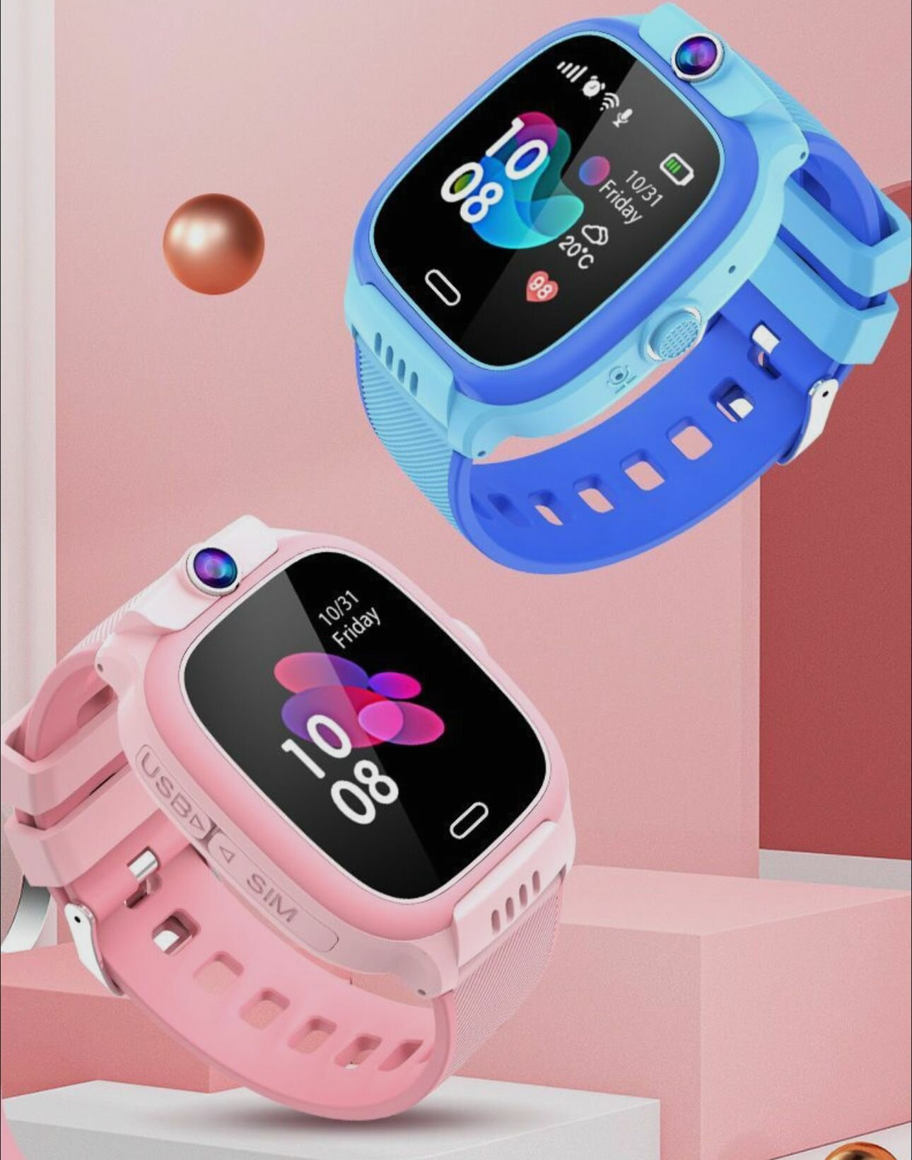 Розовый Детский Смарт часы Y31 с GPS и SIM картой, Wifi, камерой, кнопкой SOS, будильником и телефоном / Smart Watch Y31