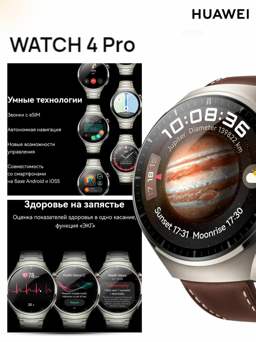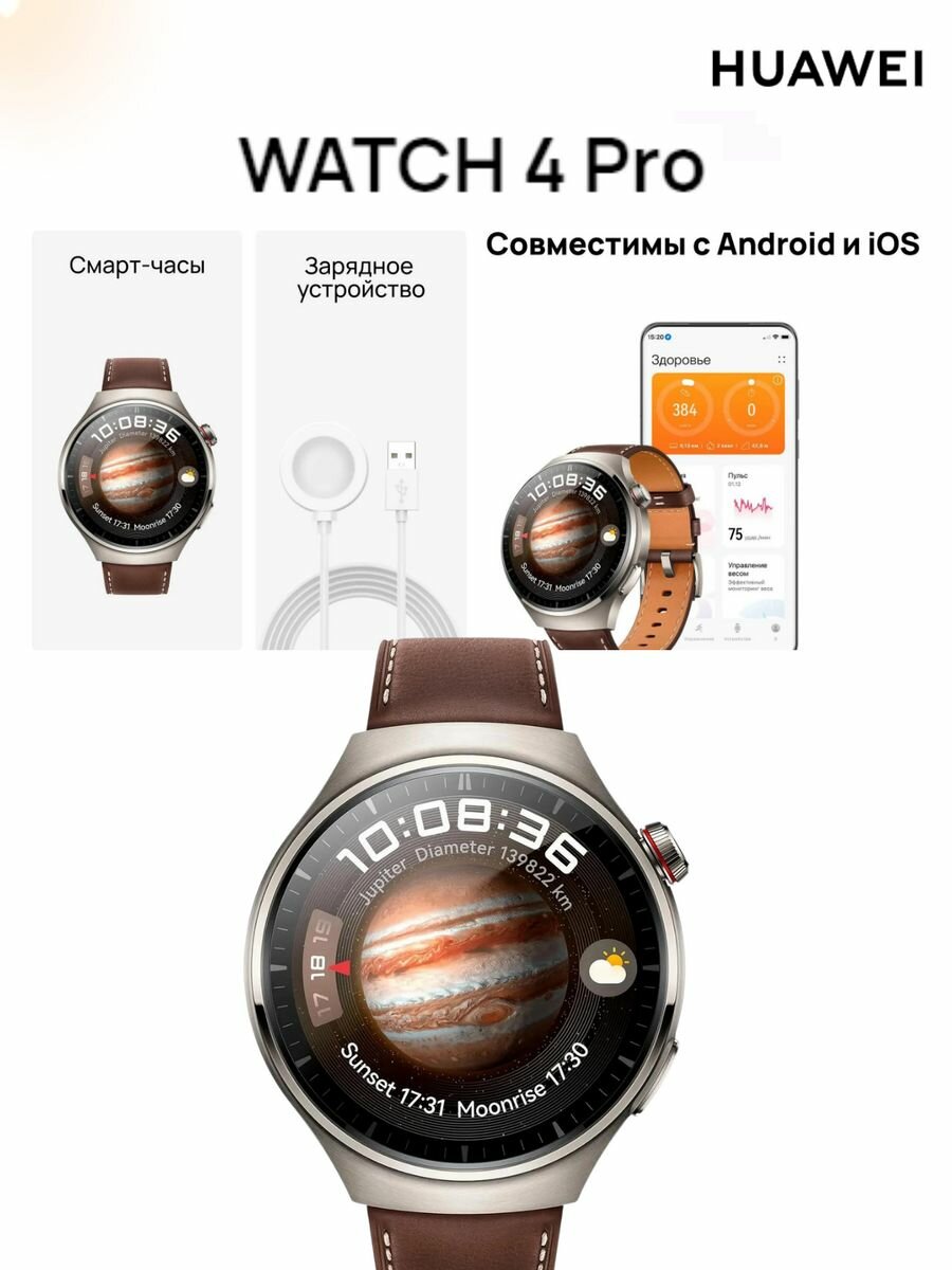 Смарт-часы Huawei Watch 4 Pro Medes-L19L 1.5" AMOLED корп.серебристый рем.темно-коричневый разм.брасл.:140-210мм (55020APB) интересное: