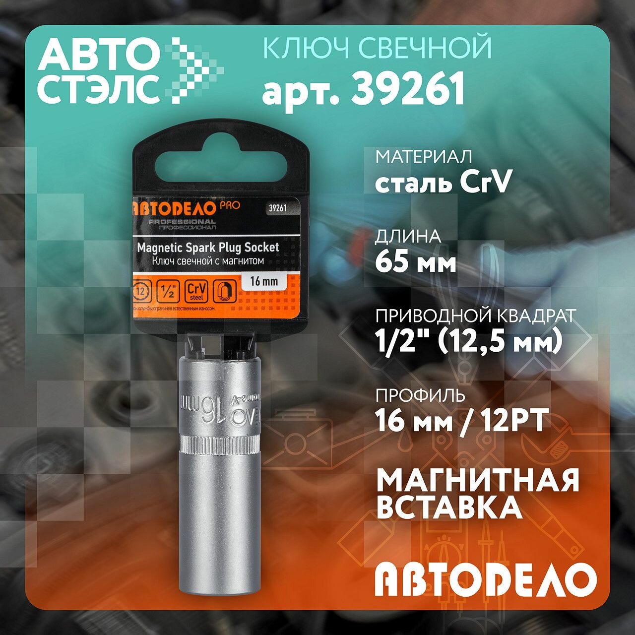 Головка торцевая свечная 16мм. 1/2" с магнитом Профессионал 39261 (АвтоDело) автодело
