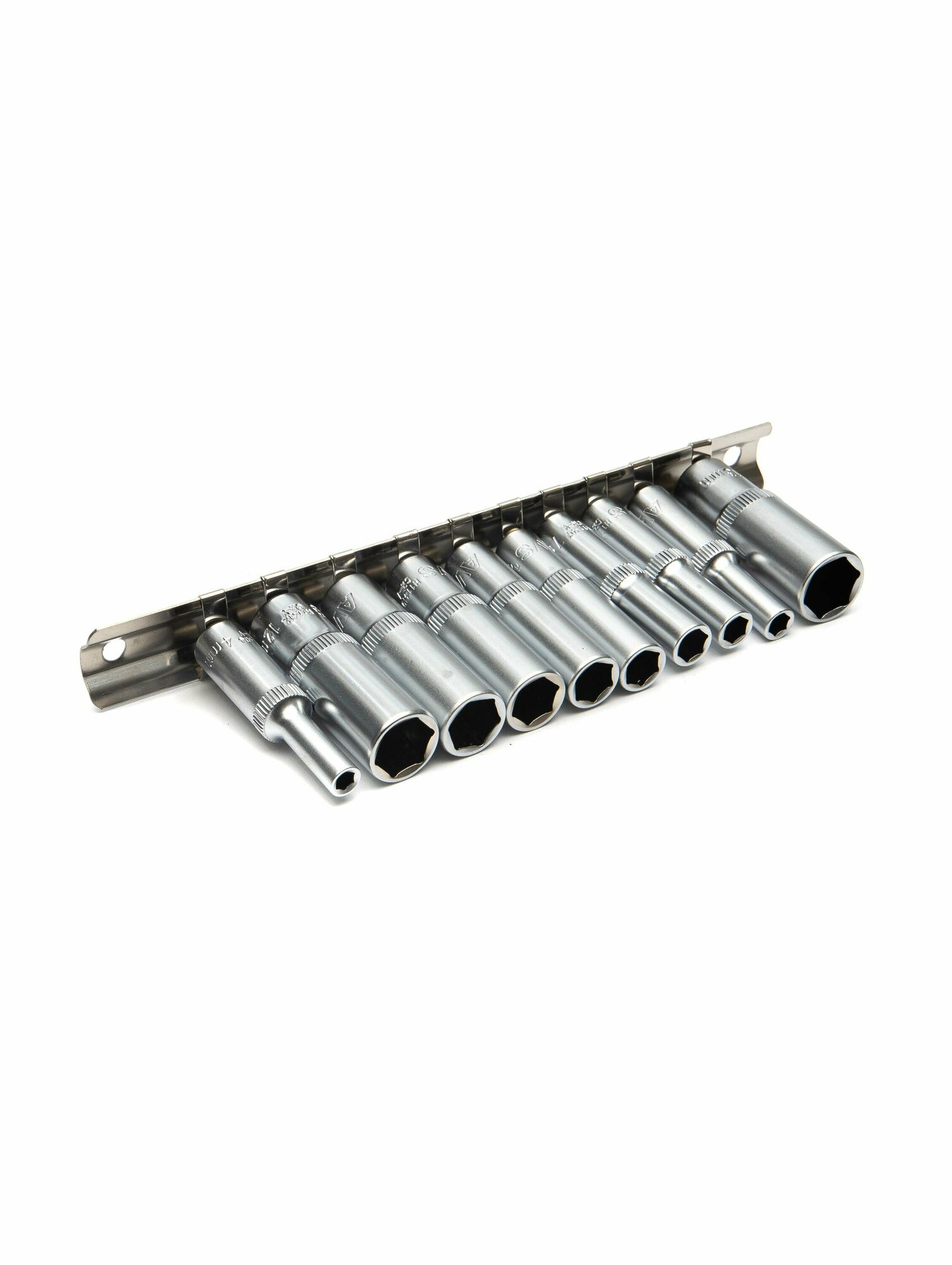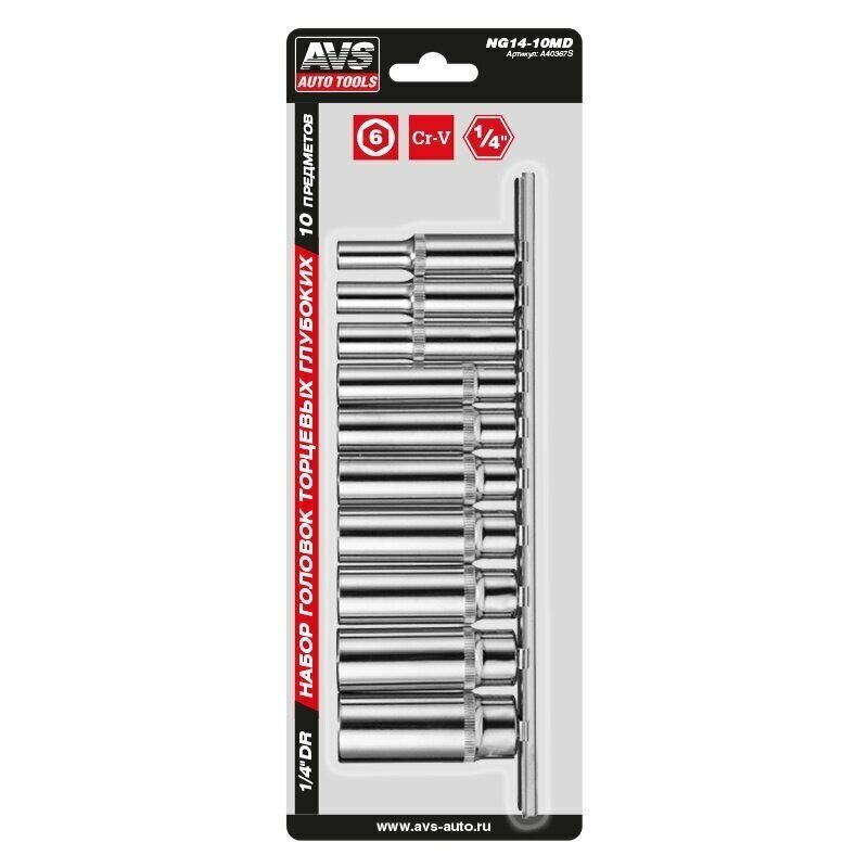 Набор головок торцевых 1/4 DR (4-13 мм) (10 предметов) глубокие на держателе AVS NG14-10MD
