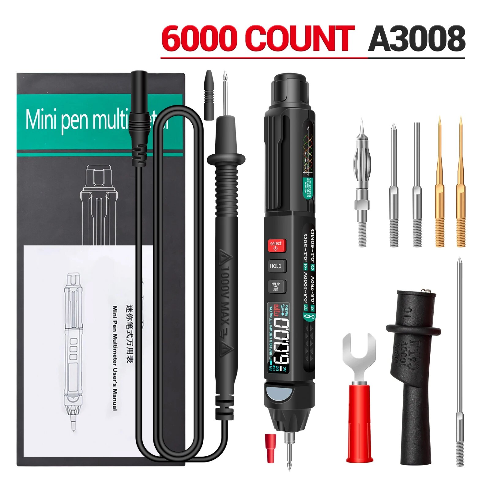 Цифровой профессиональный мультиметр-ручка True RMS ANENG A3008 PRO с NCV. 9 функций. интересное:
