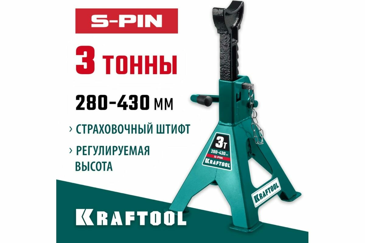 KRAFTOOL S-PIN, 3 т, 280 - 430 мм, усиленная страховочная подставка со штифтом (43465-3)