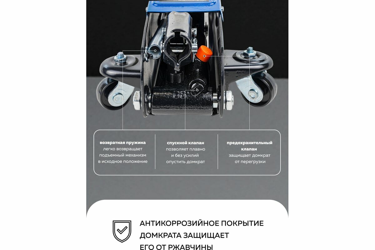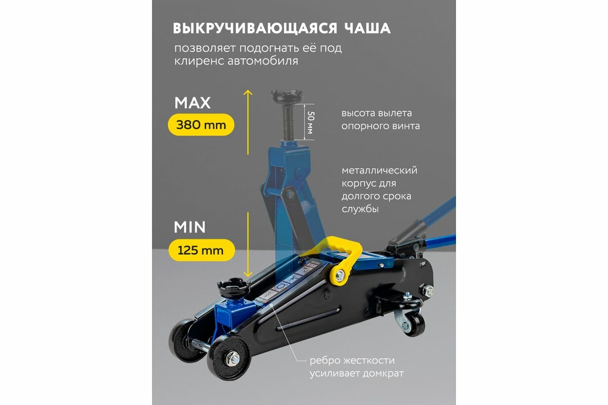 Купить Домкрат подкатной гидравлический 2т (h min 125мм, h max 380мм)