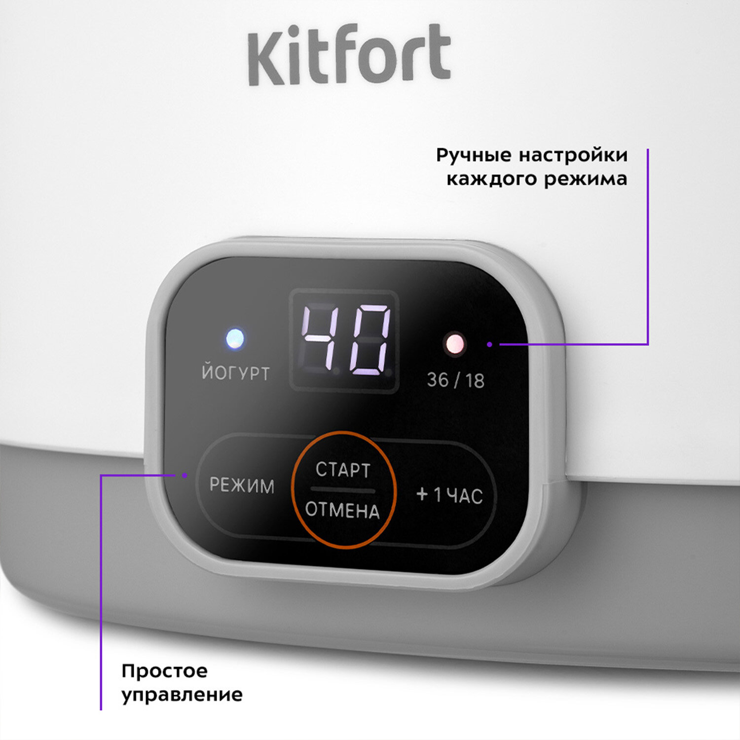 Купить Йогуртница Kitfort КТ-6080 15Вт 1б. 1000мл упр.:электрон. белый/серый