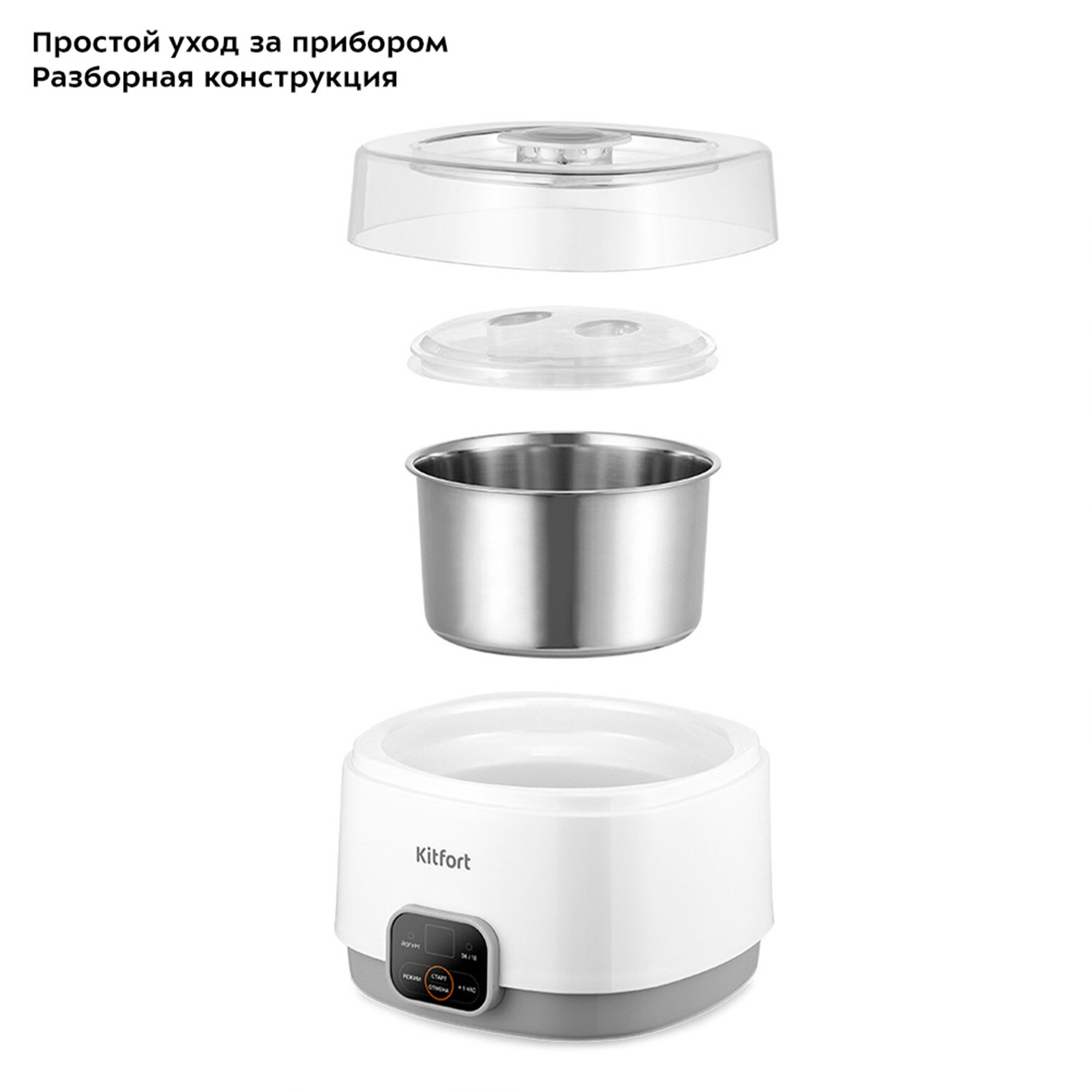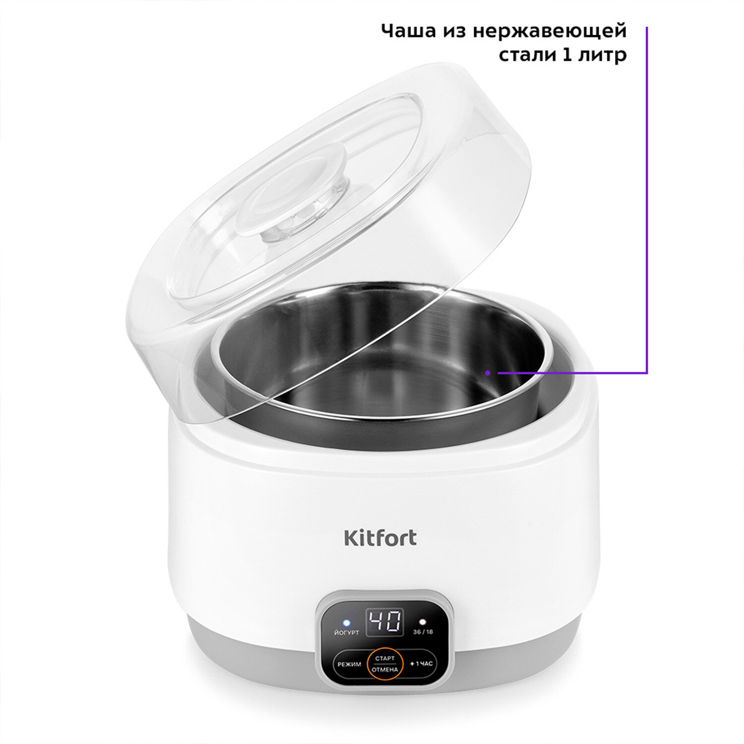 Йогуртница Kitfort 15Вт 1б. 1000мл упр.:электрон. белый/серый