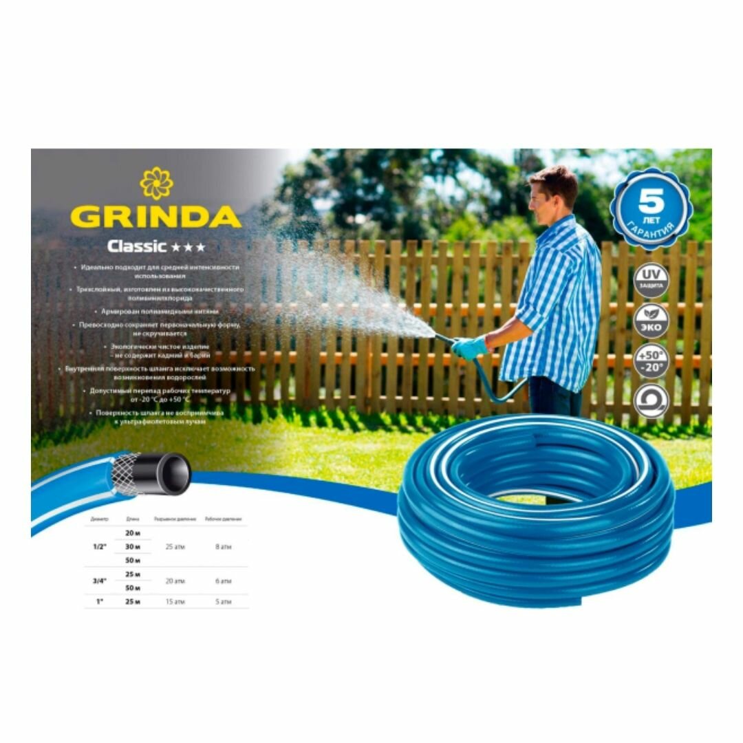 Поливочный шланг GRINDA Classic 1 2 , 20 м, 25 атм, трехслойный, армированный (8-429001-1 2-20_z02)