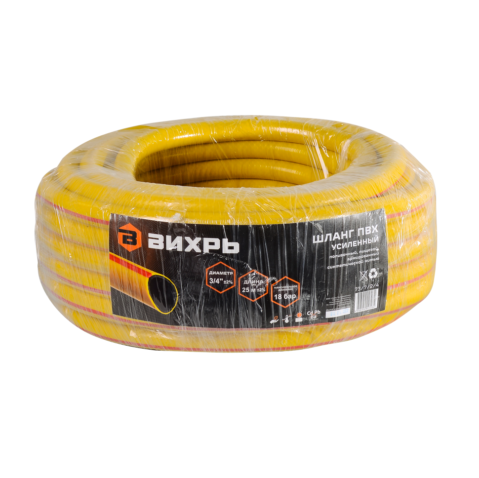 Шланг ПВХ усиленный пищевой трехслойный 3/4 25м жёлтый Вихрь
