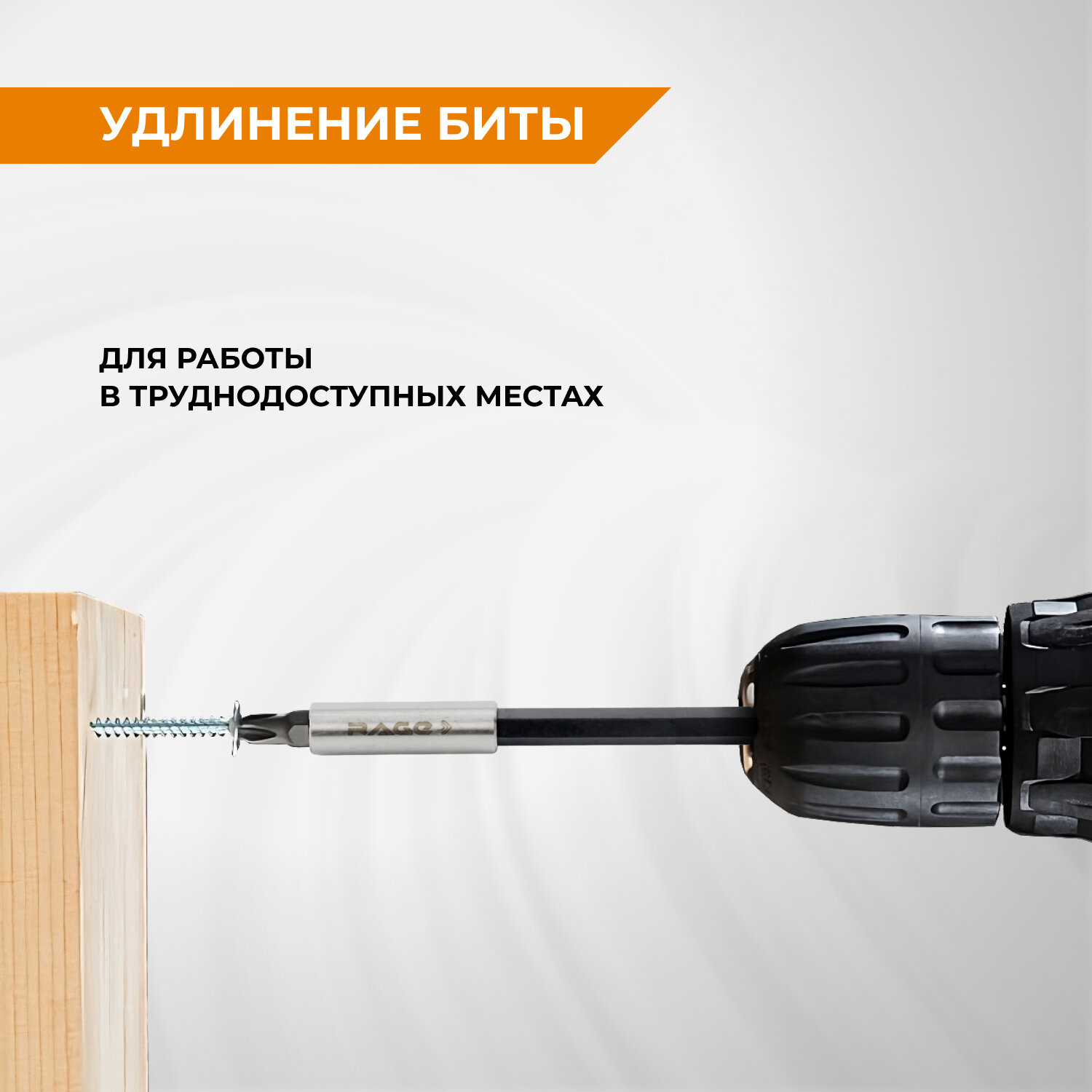 | Дополнительная информация | тип хвостовика: HEX; применение: при монтажных работах в труднодоступных местах, а также при необходимости удлинения биты |