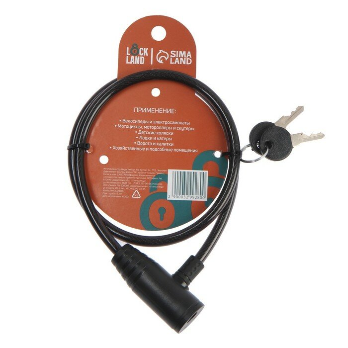 Замок навесной велосипедный LOCKLAND, 8х800 мм, английский ключ с пластиковой ручкой интересное: