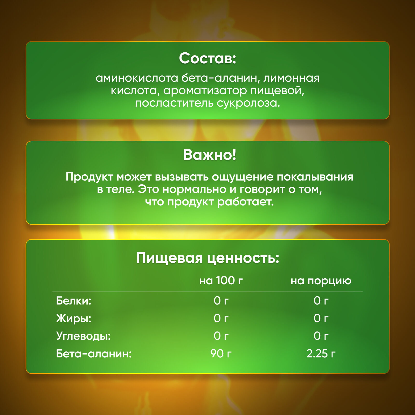 Бета-Аланин / Beta-Alanine со вкусом "Апельсин" 100 гр