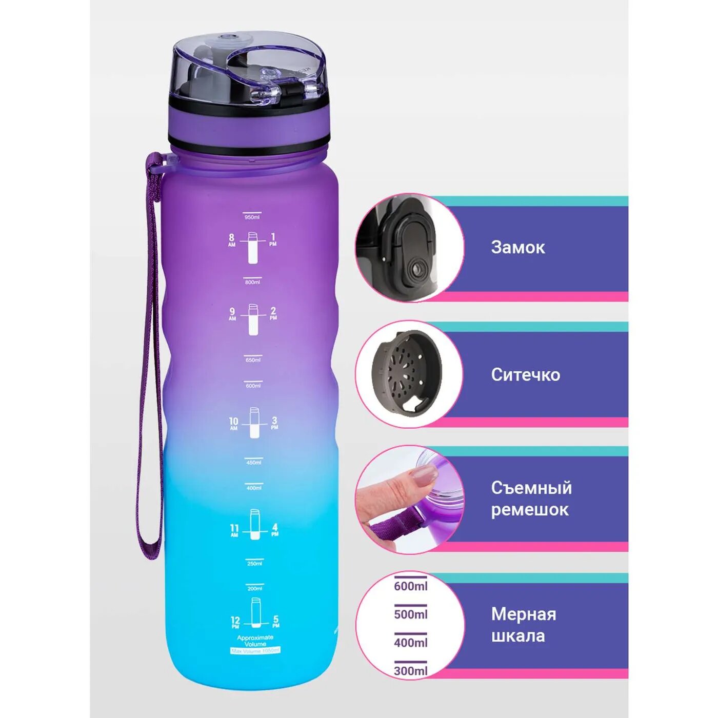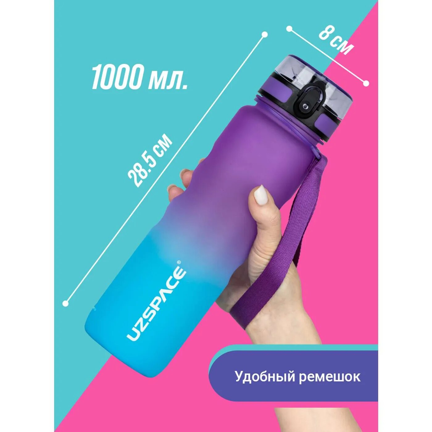 СохранитьБутылка для воды спортивная из Тритана UZSPACE1000 мл фиолетово-голубой интересное: