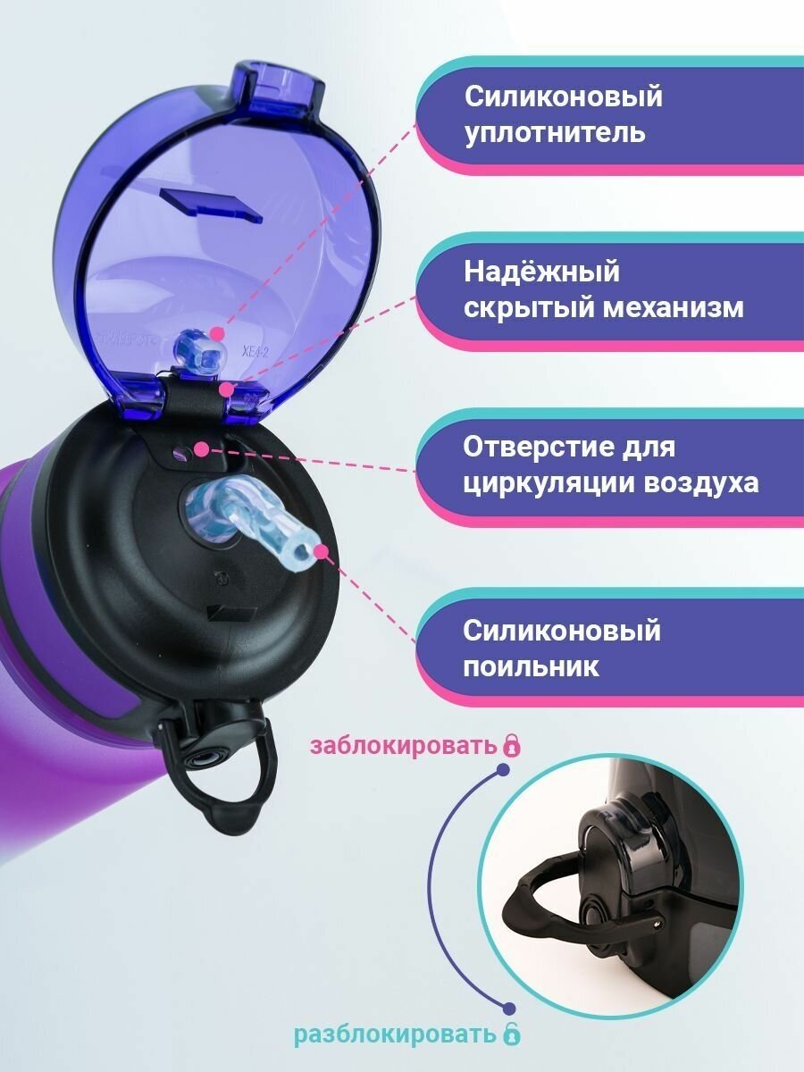 СохранитьБутылка для воды спортивная 500 мл. с трубочкой UZSPACE сиренево-голубой интересное: