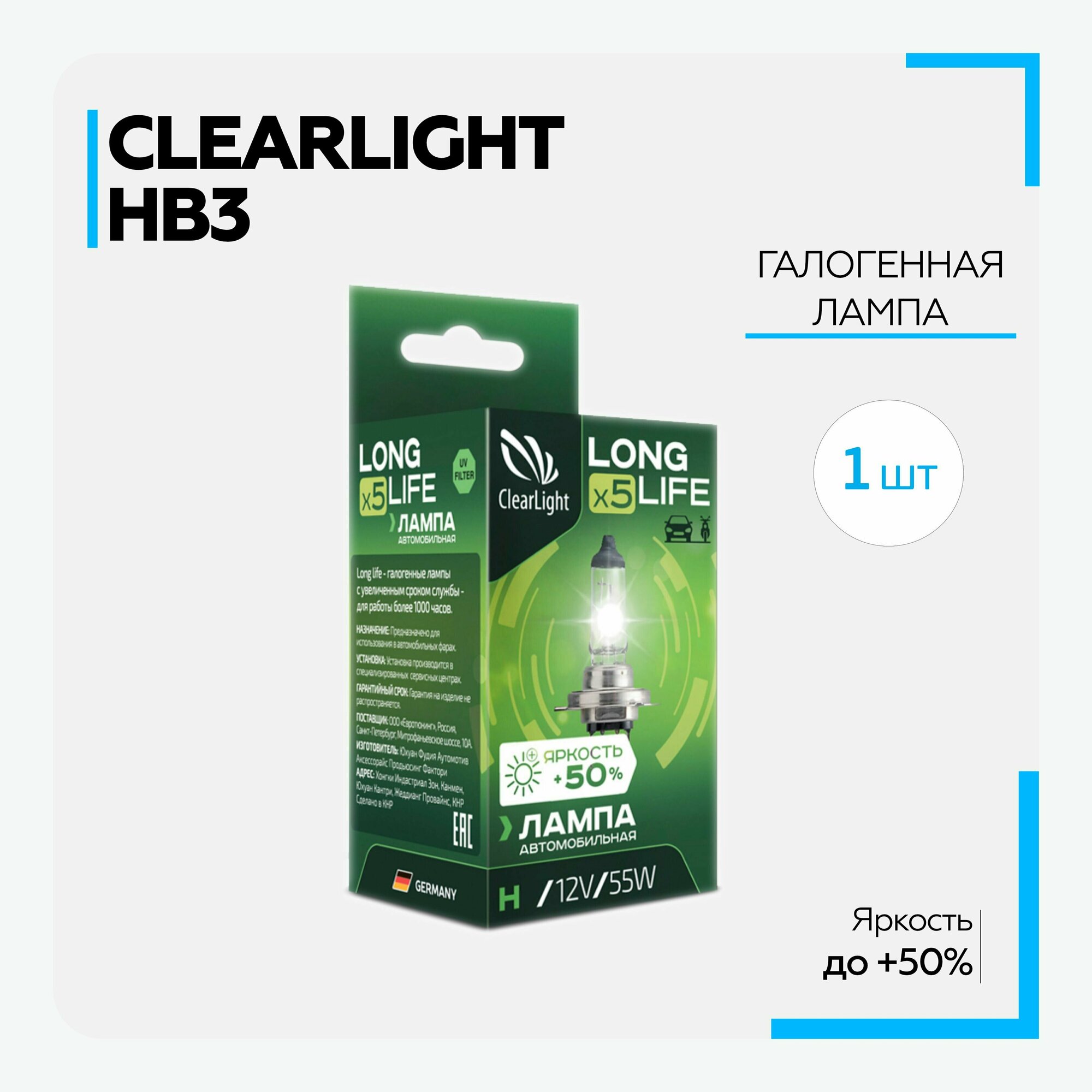 Галогенная автомобильная лампа HB3 LongLife